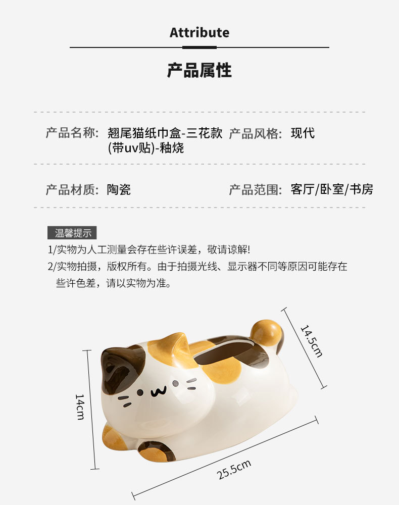 | 顔色 | 翹尾貓紙巾盒(帶uv貼)-暹羅款-釉燒 |