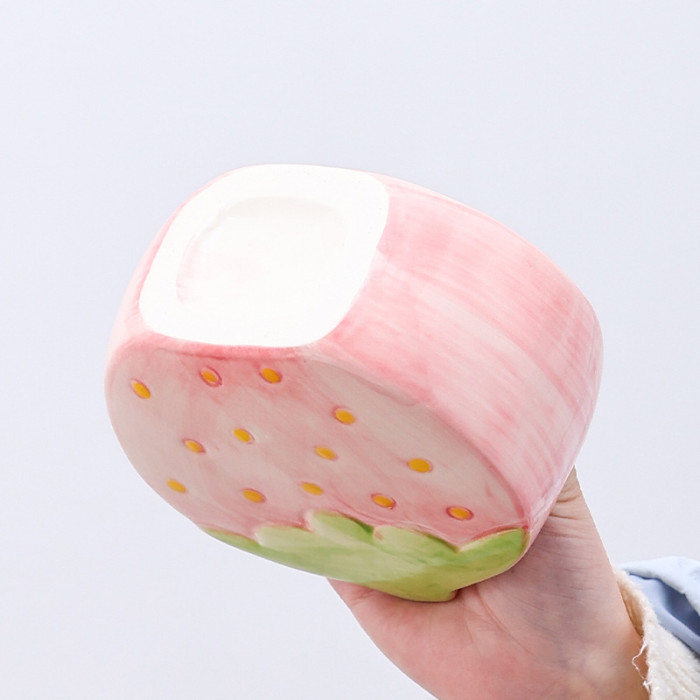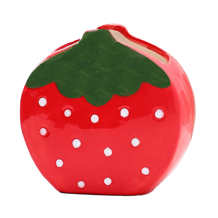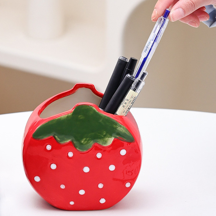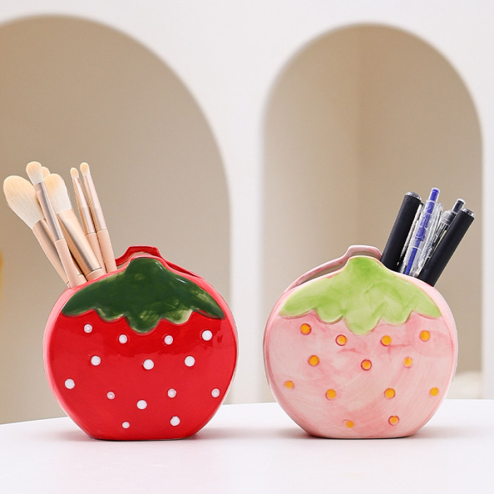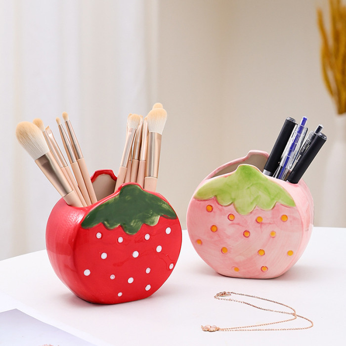 桌面襍物梳妝台口紅化妝品辦公筆筒小置物架可愛草莓化妝刷收納筒