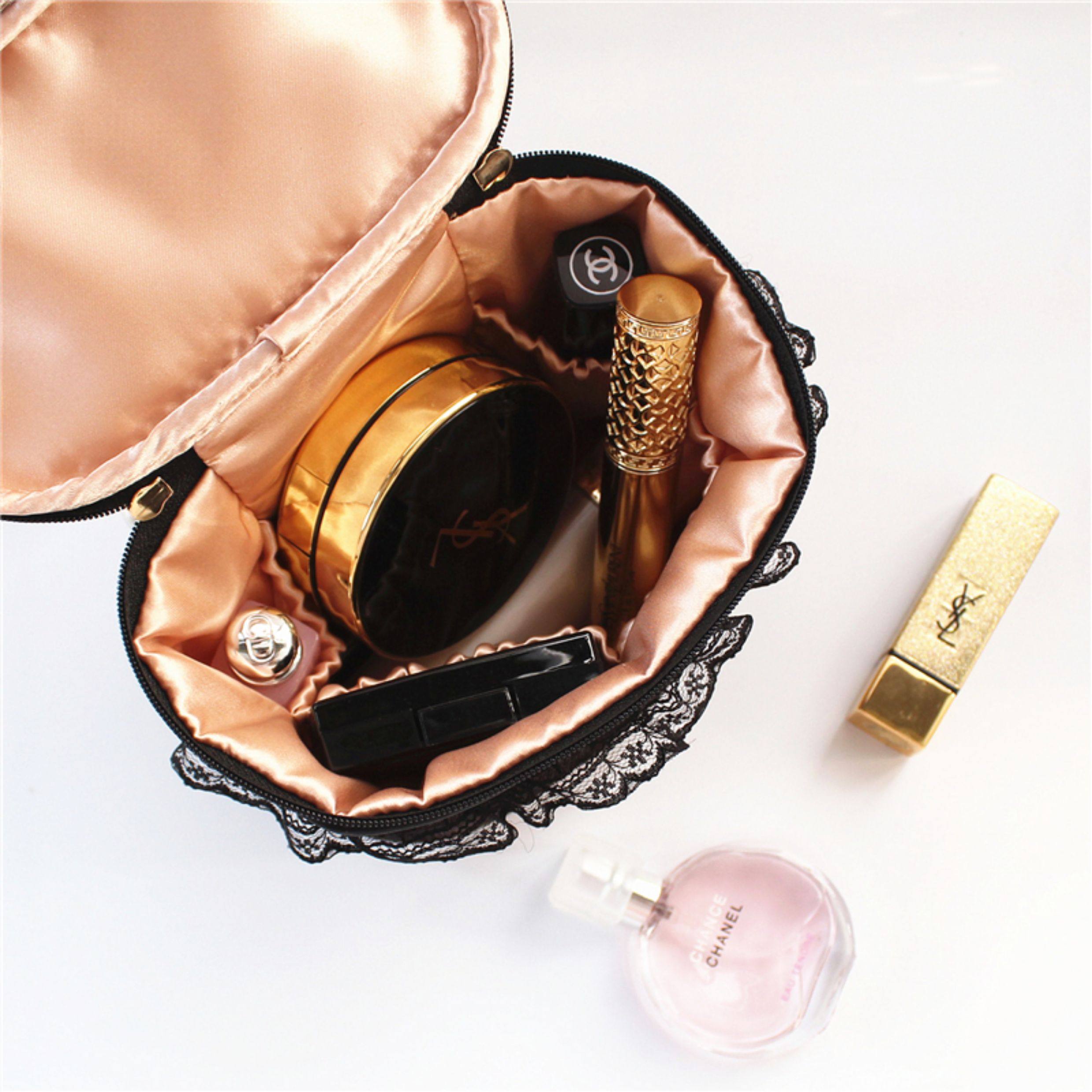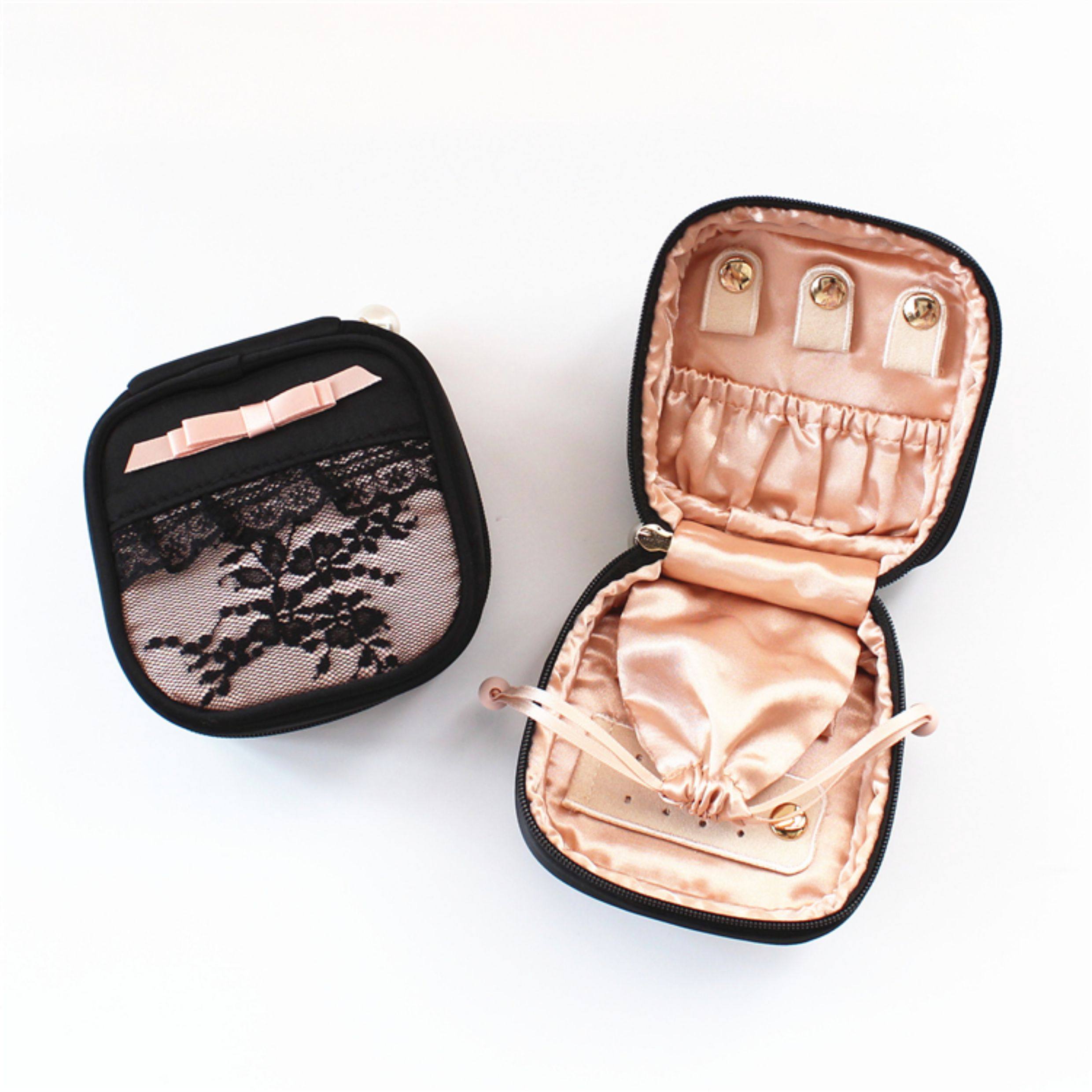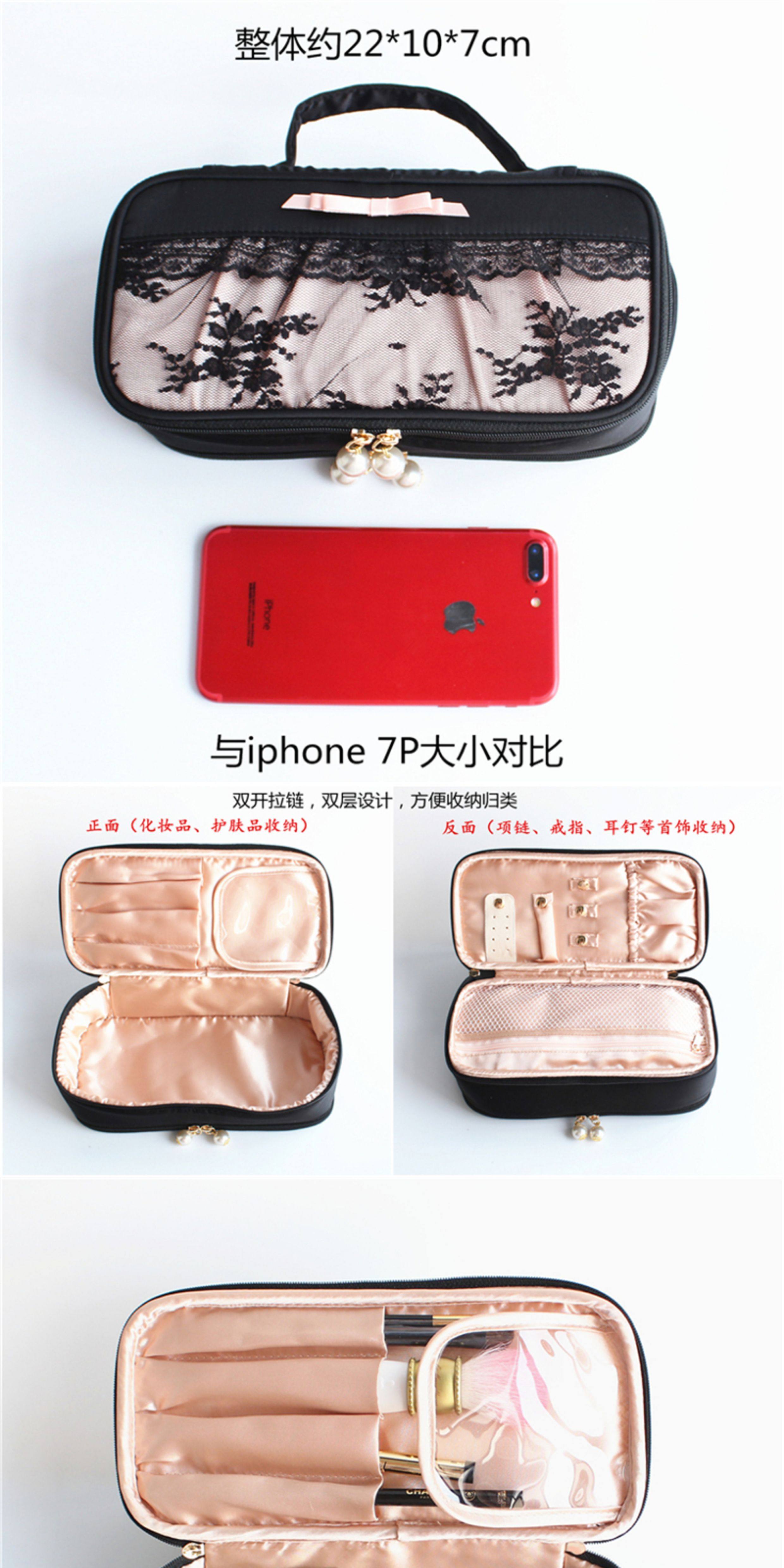優雅復古蕾絲大小號化妝包手提化妝箱多功能迷你首飾盒內衣收納袋