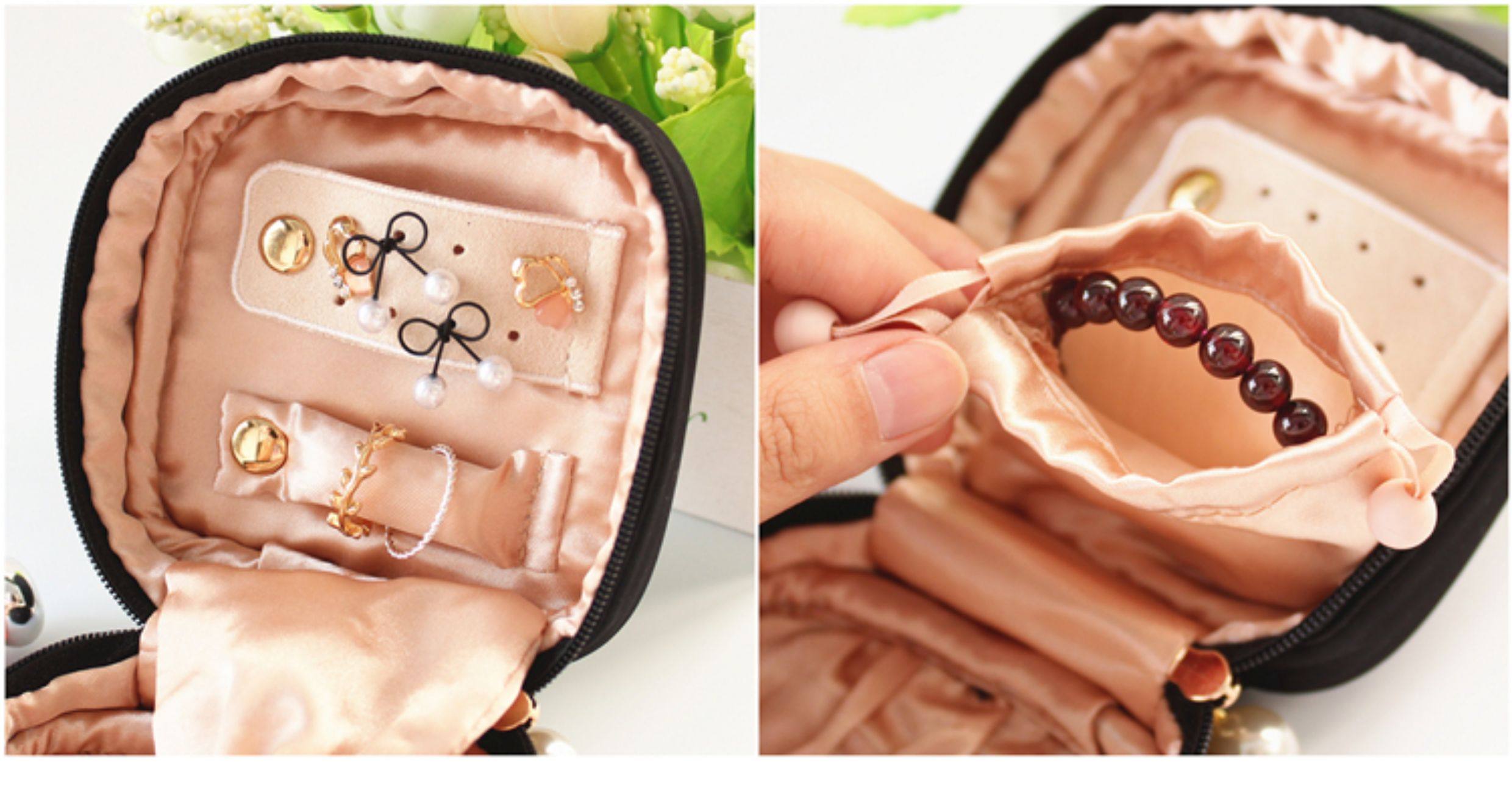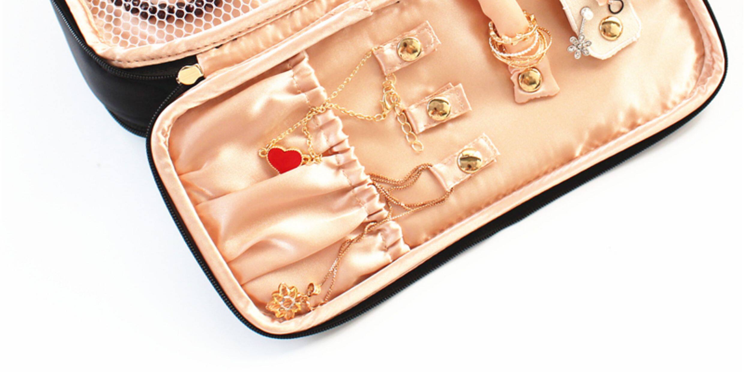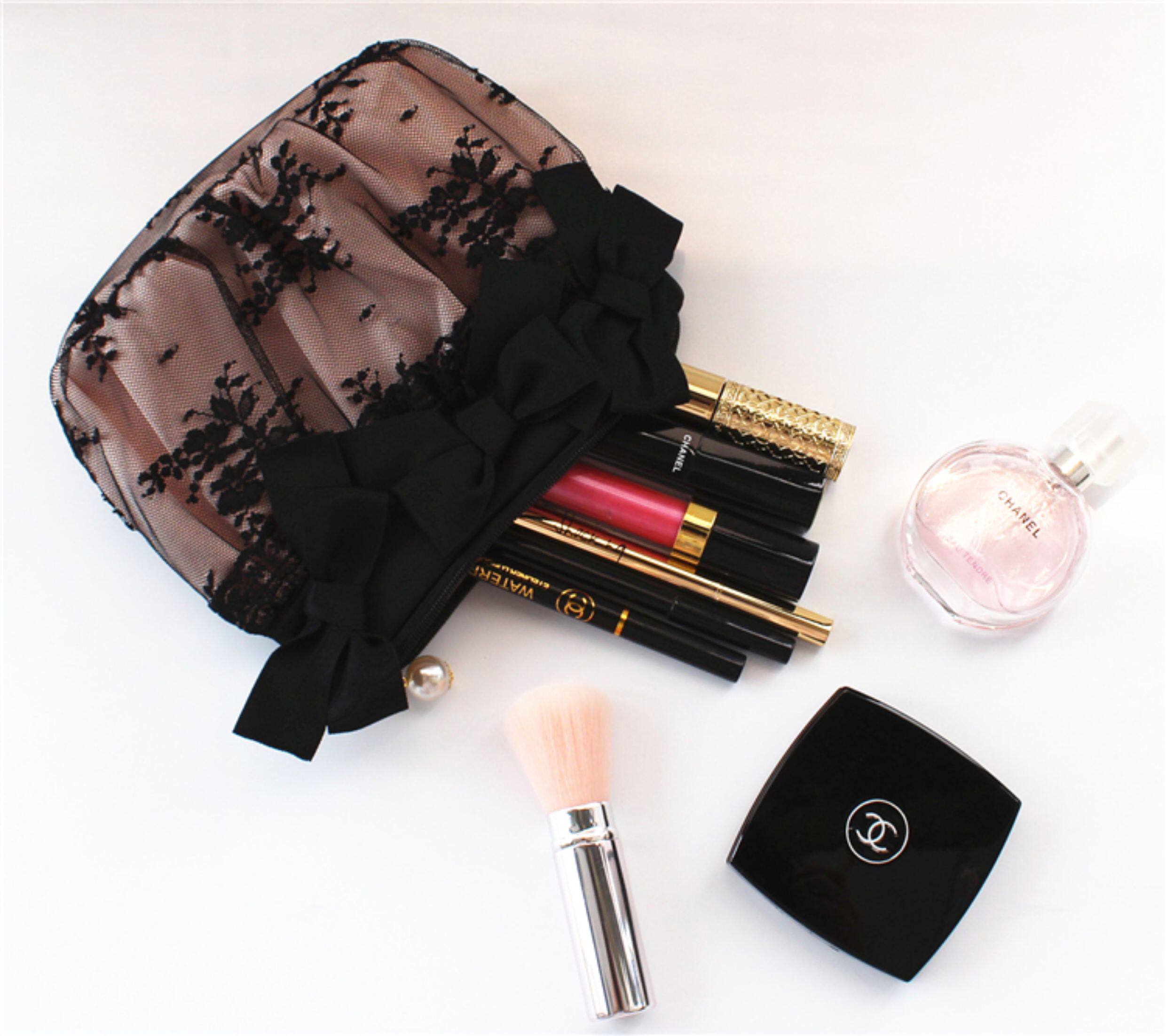 優雅復古蕾絲大小號化妝包手提化妝箱多功能迷你首飾盒內衣收納袋