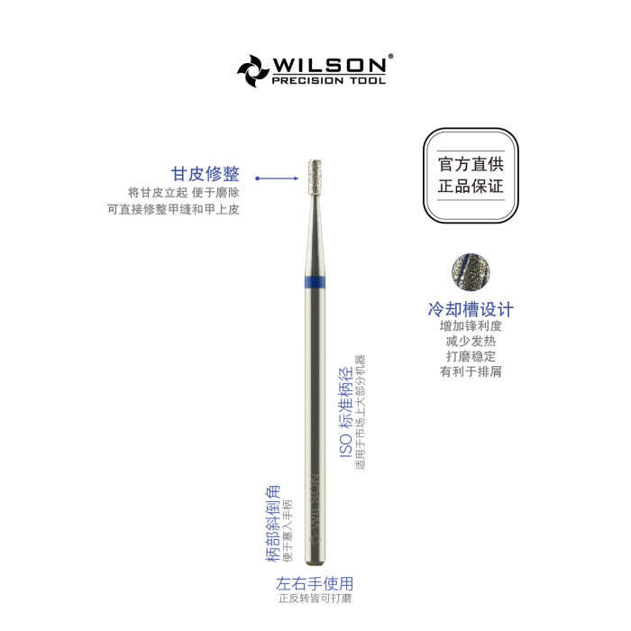 WILSON惠而順 1.4mm短刃直筒 電鍍金剛石俄式前置磨頭美甲工具HOT