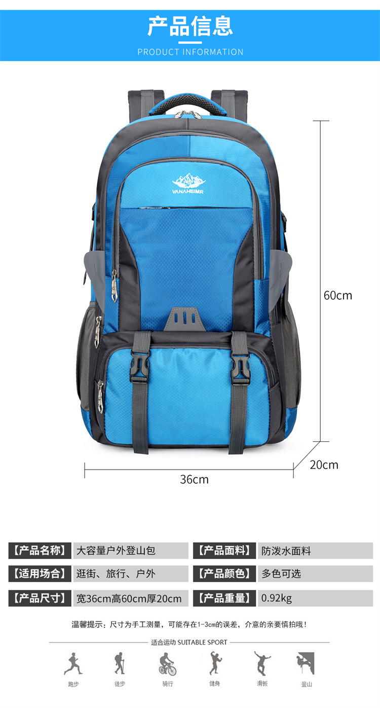 戶外登山包雙肩男旅行包旅遊後背包大容量雙肩包女輕便徒步後背包