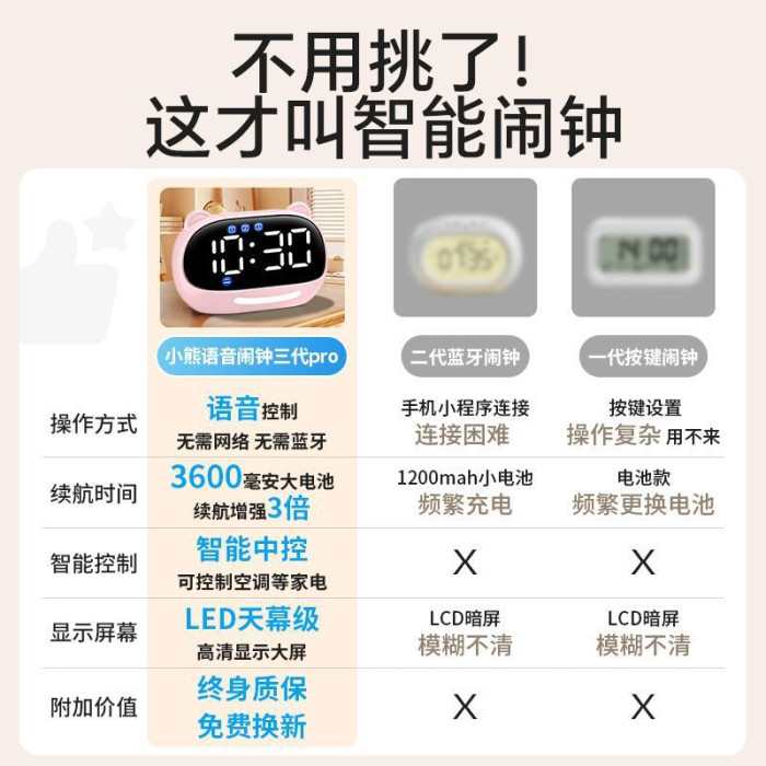 智能語音閙鍾小學生專用起床神器兒童電子多功能2024新款充電時鍾