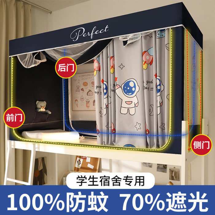 拉鍊式學生寢室上鋪蚊帳三開門床簾床幔遮光防蚊神器床簾一體式