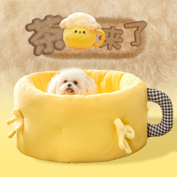 秋冬季狗狗保暖加厚深度睡眠茶杯圓窩中小型犬毛絨狗窩貓窩寵物窩