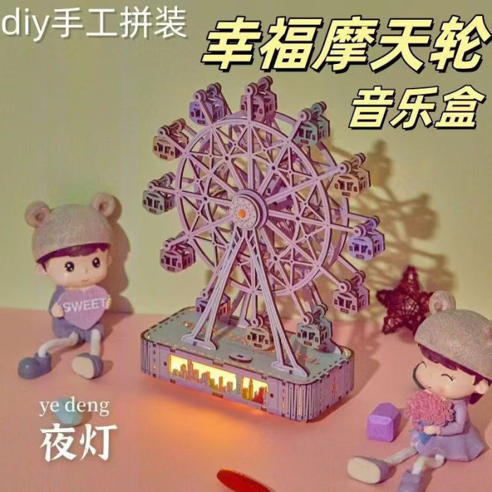 摩天輪八音盒DIY摩天輪木質拼裝情侶送禮物抖音同款快樂園材料包