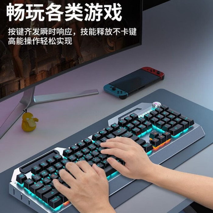 前行者有線TK900機械鍵盤電競遊戯辦公鍵鼠套裝方健旋鈕機械軸體