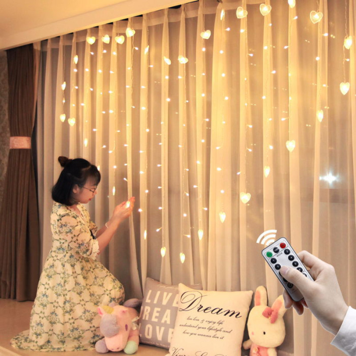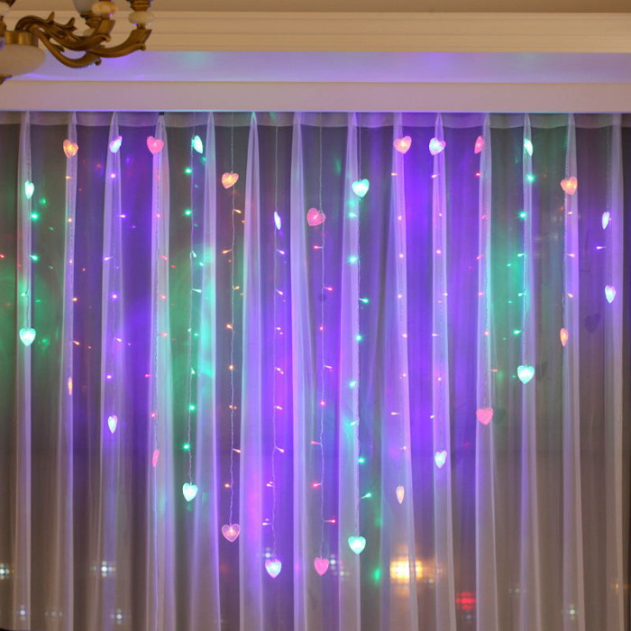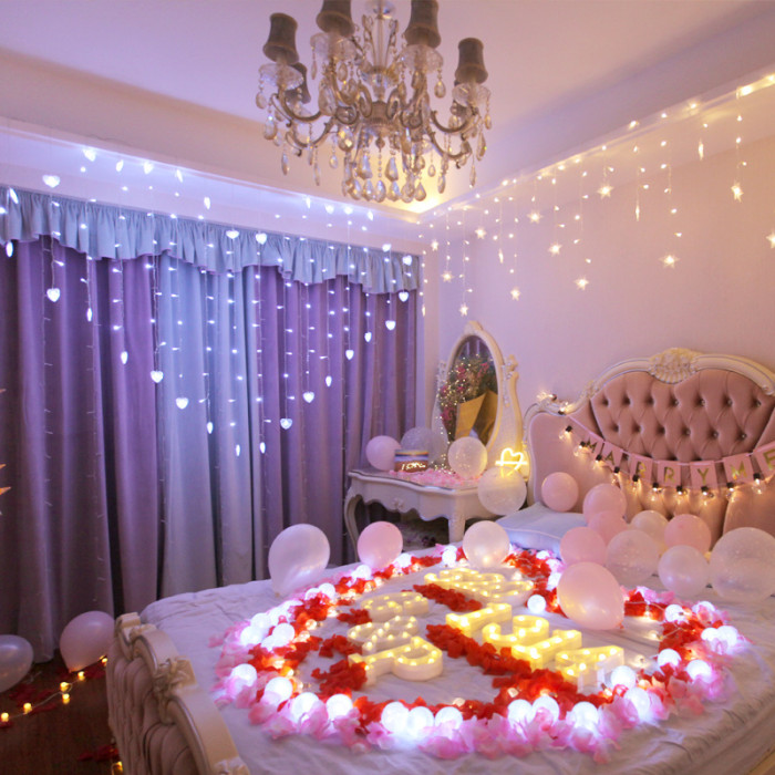 發光滿天星星愛心窗簾冰條LED彩燈七夕求婚表白氛圍室內布置裝飾