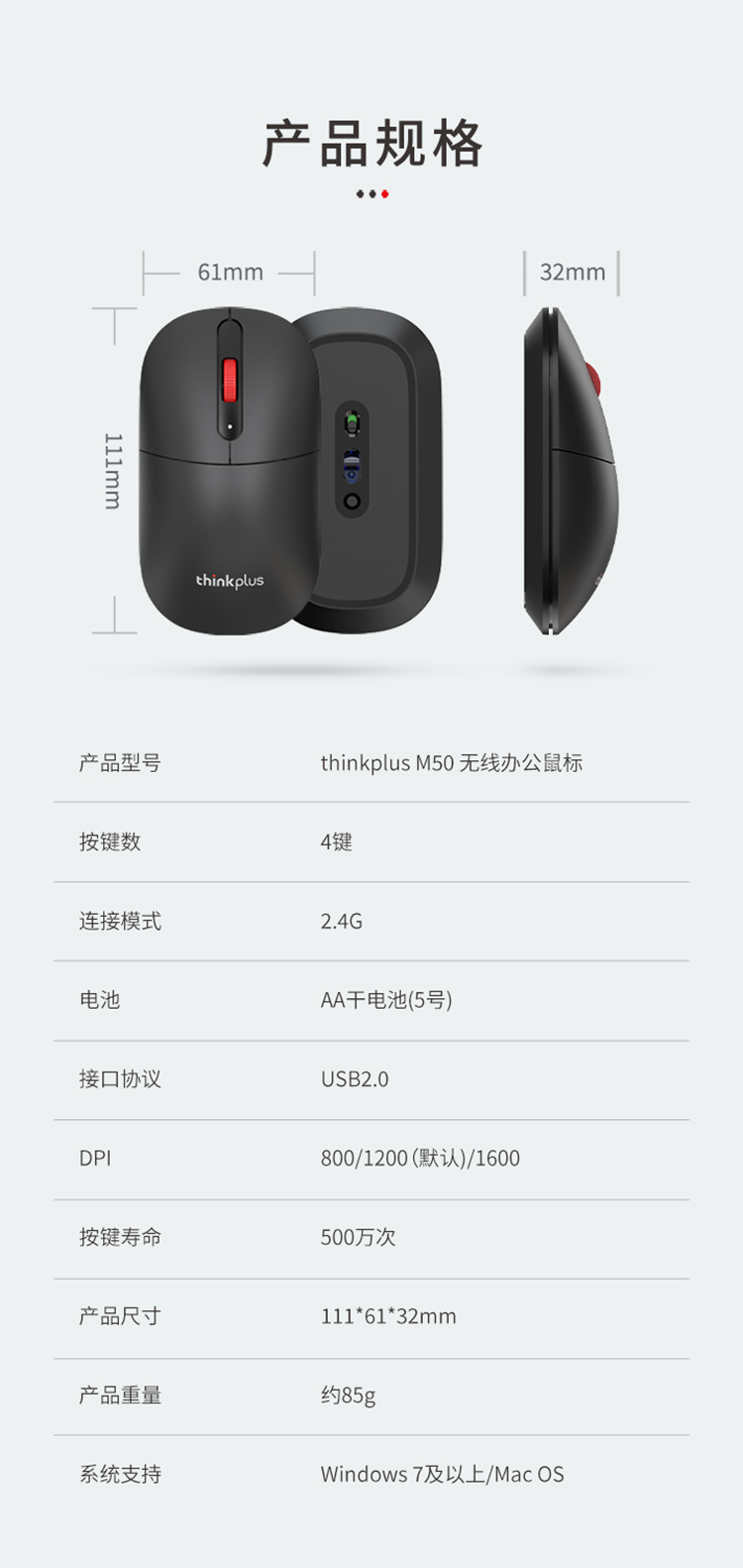 | 型號 | 聯想M50紅點無線滑鼠 |