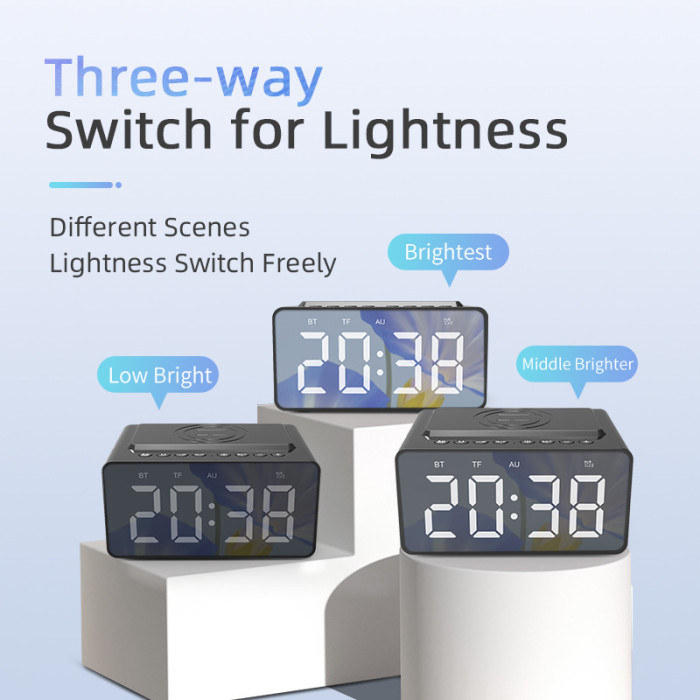 藍牙音箱新款無線充時鍾LED閙鍾音響爆款新款無線充藍牙音響