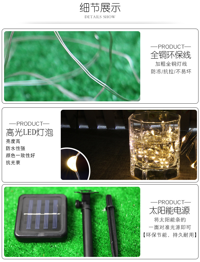 型號 100頭白色銅線太陽能燈