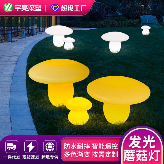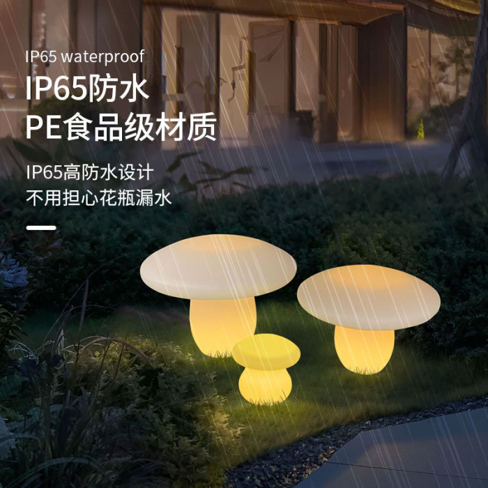 LED遙控七彩發光蘑菇燈別墅戶外庭院太陽能晚上庭院燈插地草坪燈