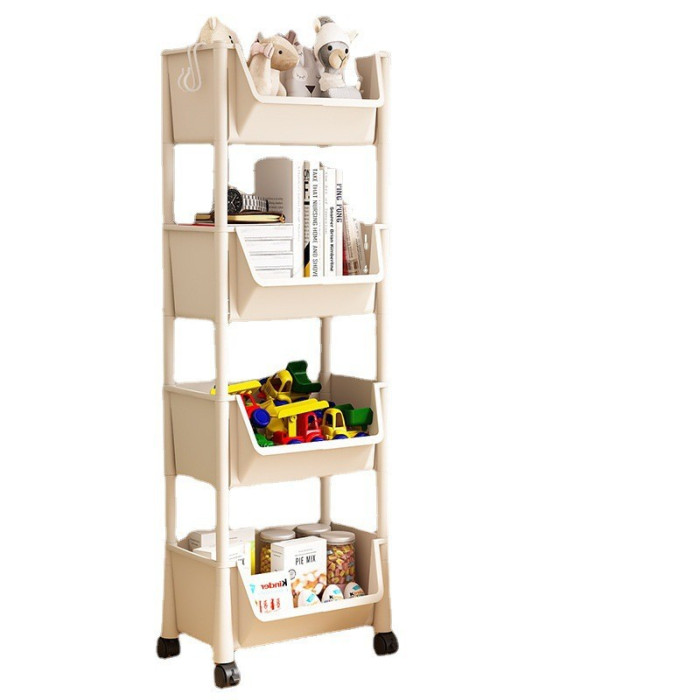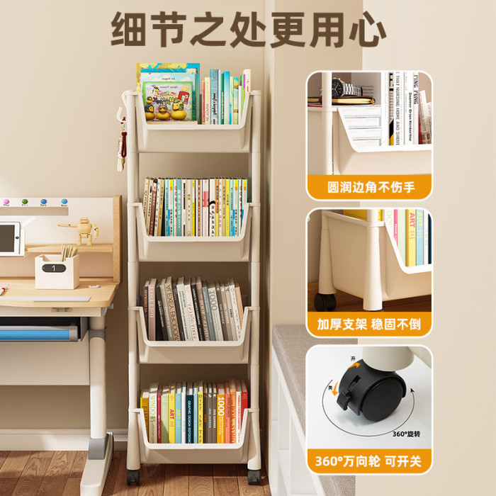 可移動書架置物架兒童玩具收納架多層家用小推車帶輪落地簡易書櫃