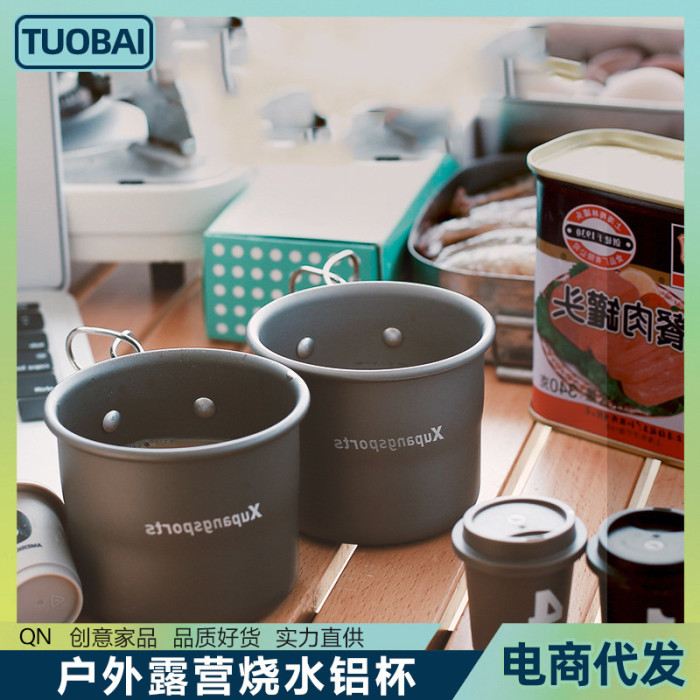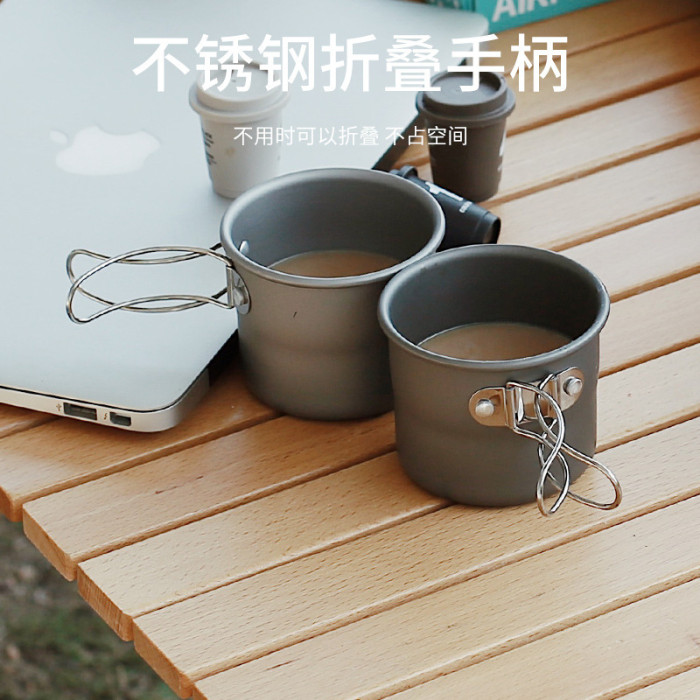 戶外水杯可攜式折曡野營雪拉碗野營杯子炊具露營鋁杯露營喝茶水杯