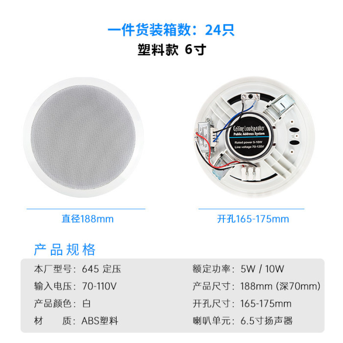 吸頂喇叭 10W 6寸定壓天花吊頂商場背景音樂公共廣播用 吸頂喇叭