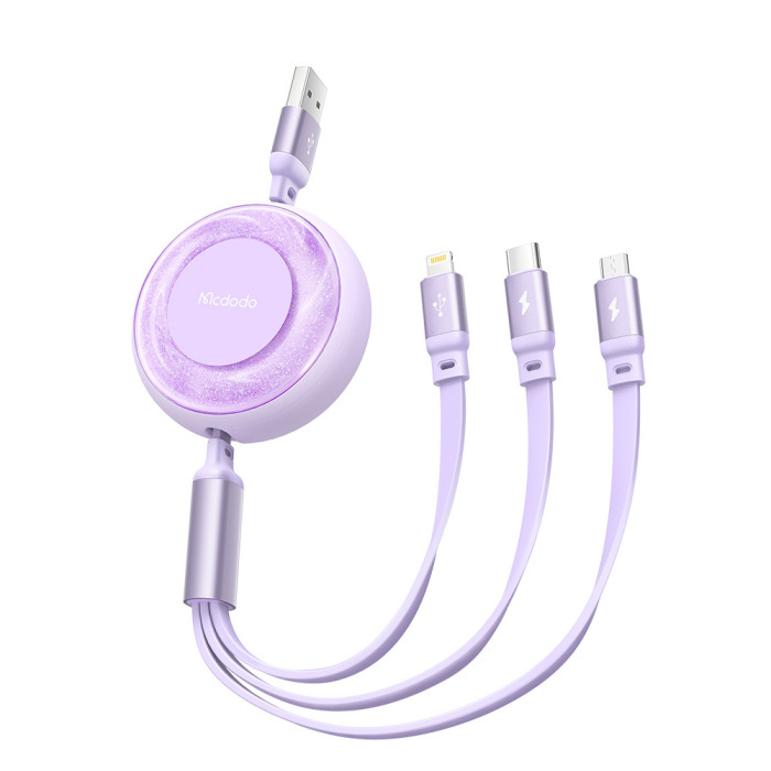 麥多多一分三隨意拉伸縮數據線新款帶夜光適用蘋果華爲手機快充線