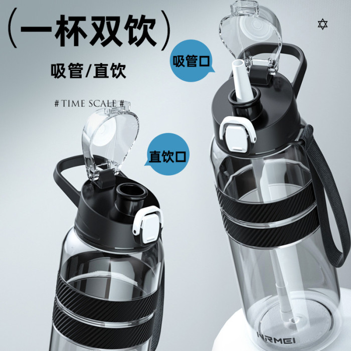 Tritan吸管運動水杯2023新款男夏天耐高溫可攜式大容量塑膠杯子水壺
