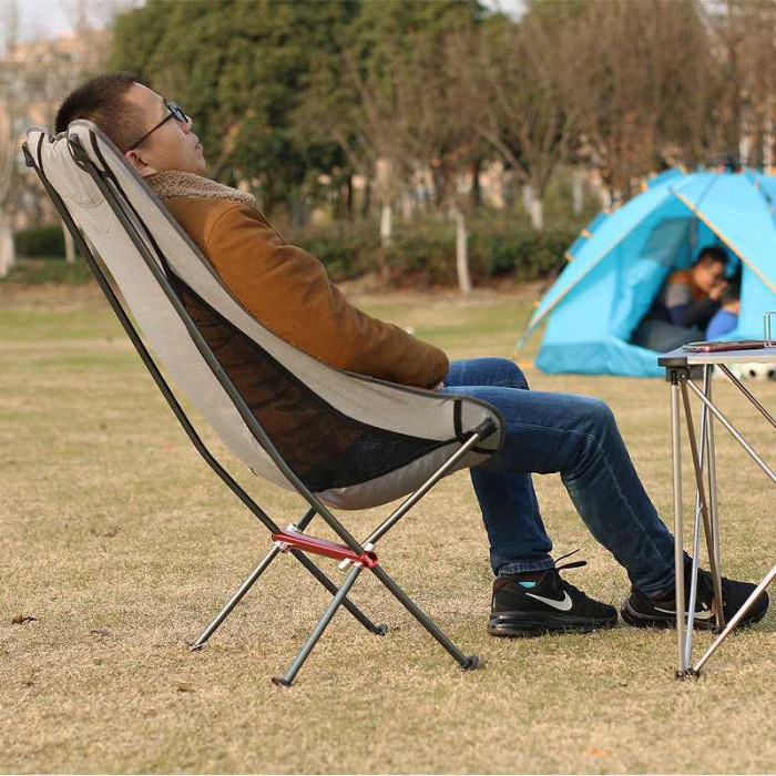 折曡月亮椅子加高休閒野營靠背椅蝴蝶椅野營靠背鋁合金躺椅釣魚椅
