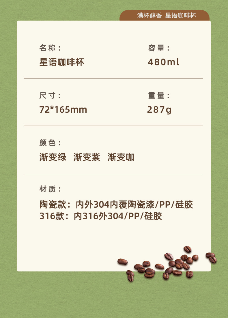 咖啡保溫杯陶瓷內膽男女生可攜式高顔值2023新款316隨行保冷水杯子