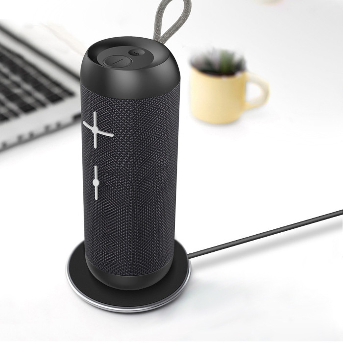 新款無線藍牙音箱圓柱形小音響立體聲可攜式布藝防水低音砲