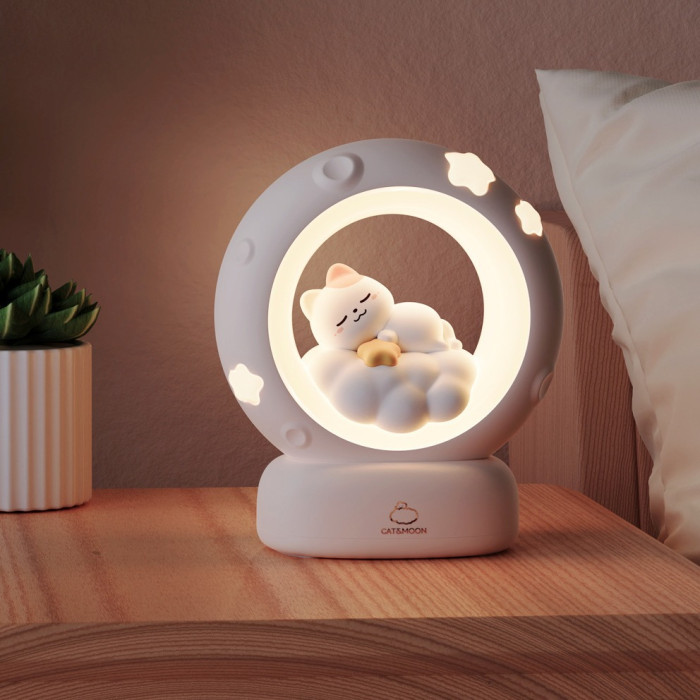 摘星攬月兔小夜燈摘星攬月貓創意夜燈喂奶燈觀賞燈