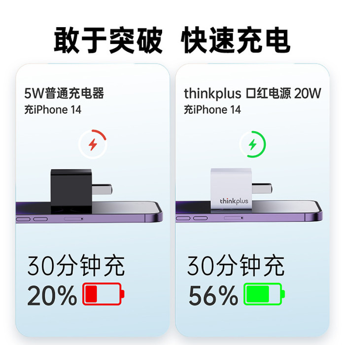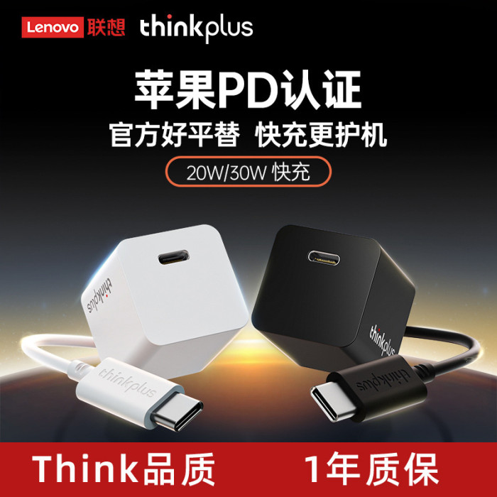 聯想ThinkPlus適用蘋果15充電器20W氮化鎵ip14華爲type-C充電頭