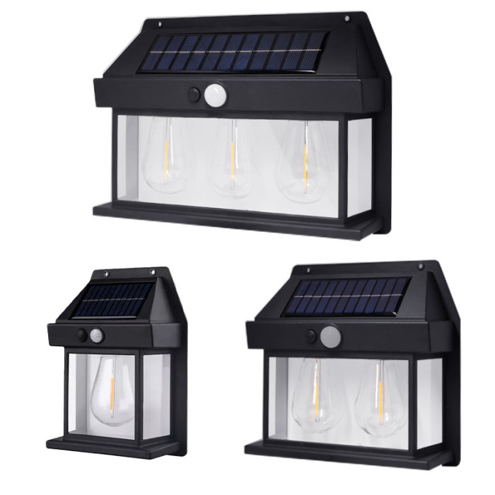 新款戶外太陽能壁燈戶外防水鎢絲燈感應庭院燈花園別墅小夜燈照明