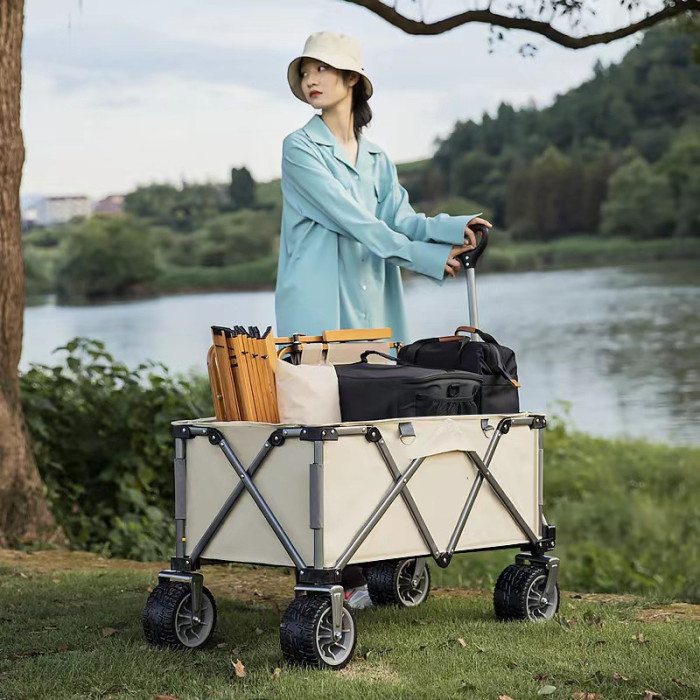 JR戶外折曡手拉車露營可攜式加厚加寬金屬營地車聚攏款拖車小推車