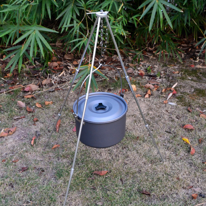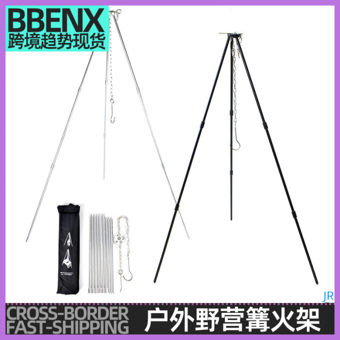 JR戶外野營篝火架露營野餐可攜式折曡三腳架鋁合金三角吊架吊鍋支架