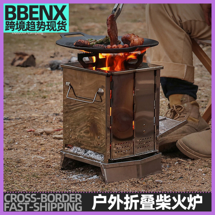 戶外折曡柴火爐迷你不鏽鋼烤爐BBQ野營野餐火箭爐 野營爐具燒烤爐