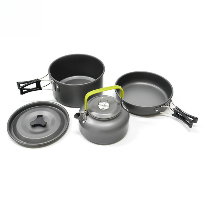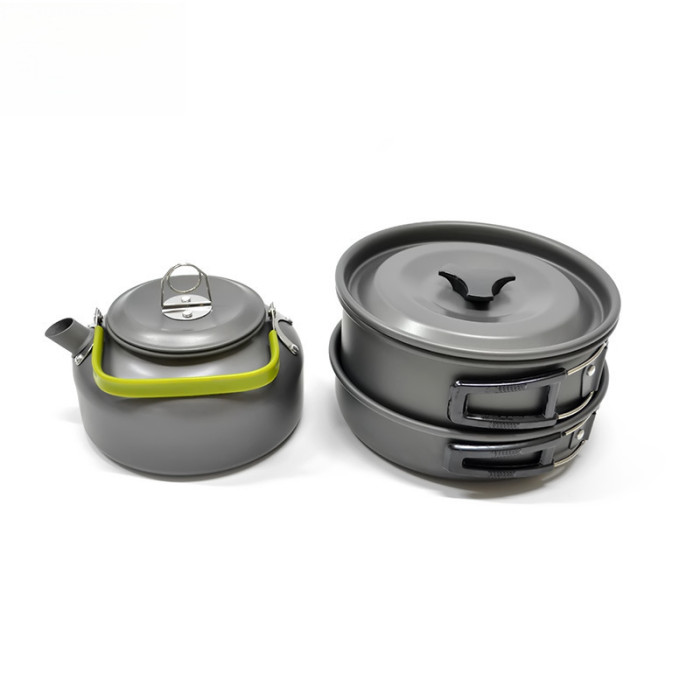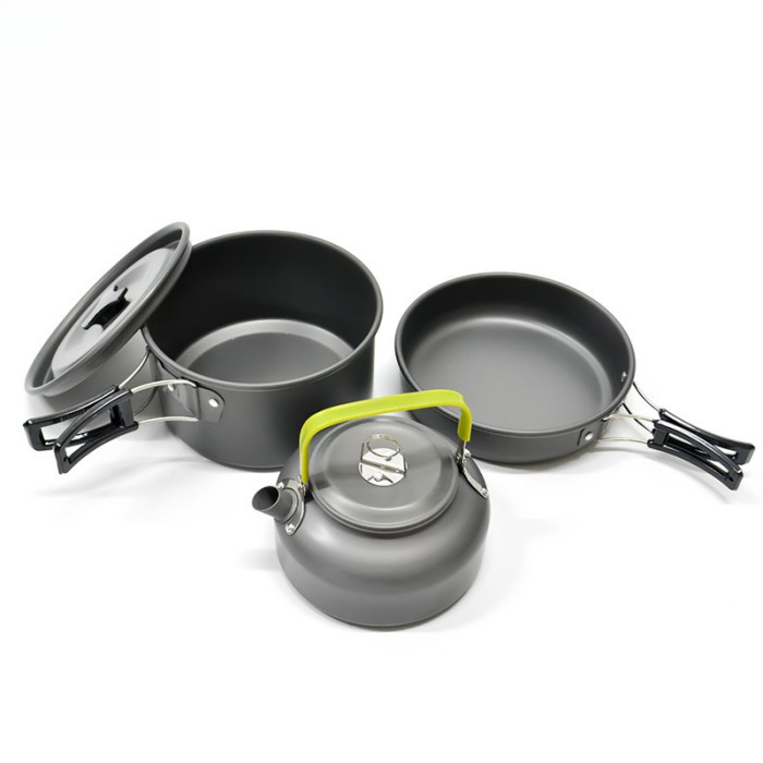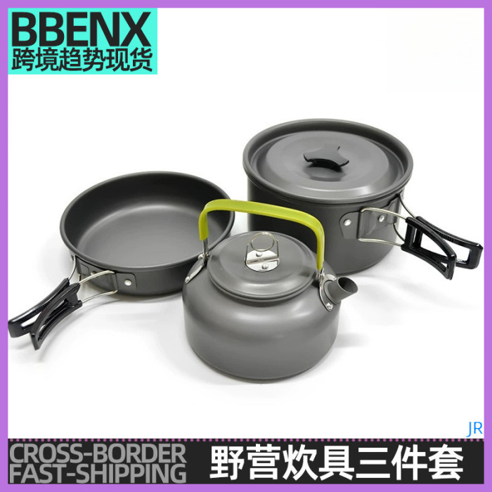 JR野營炊具三件套戶外登山露營野炊平底鍋煮鍋茶壺組合氧化鋁炊具