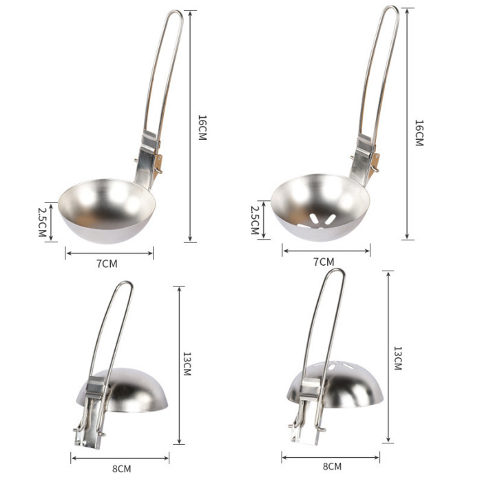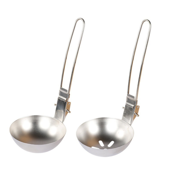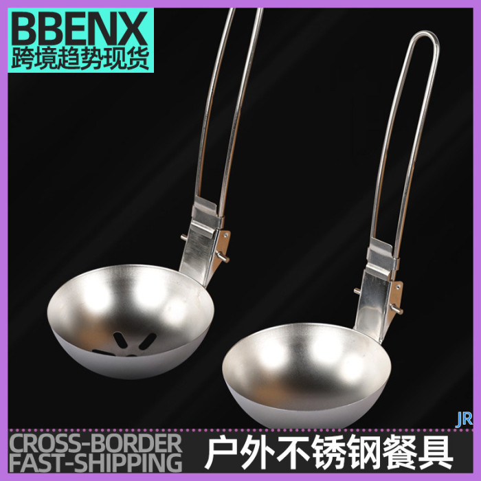 JR戶外不鏽鋼餐具登山野營露營旅行野炊湯勺漏勺可折曡兩件套炊具