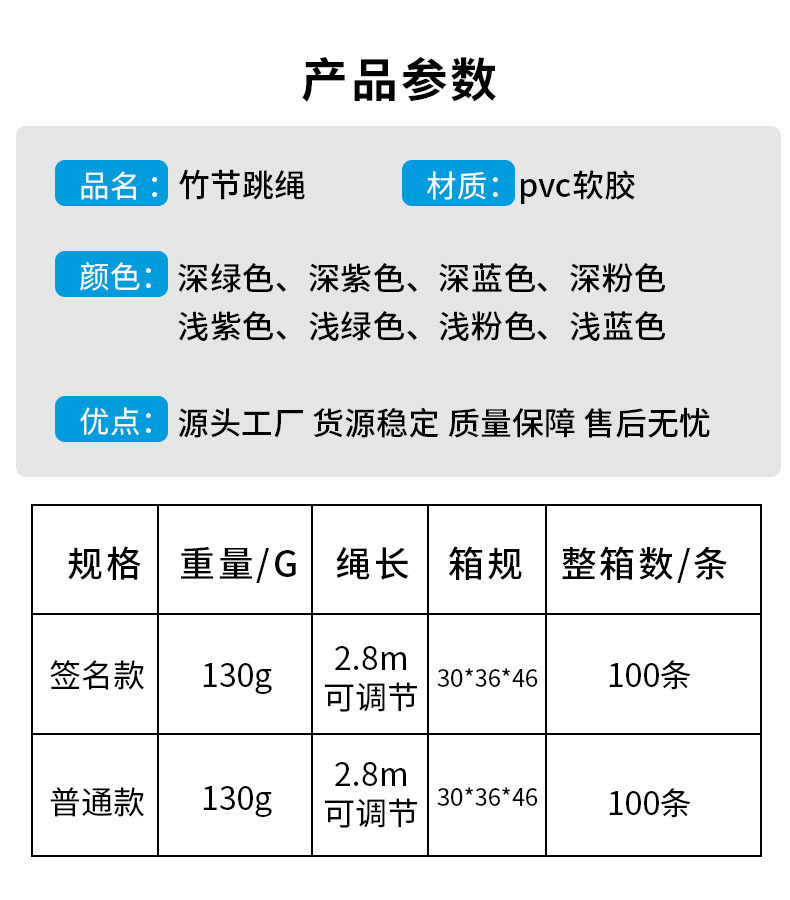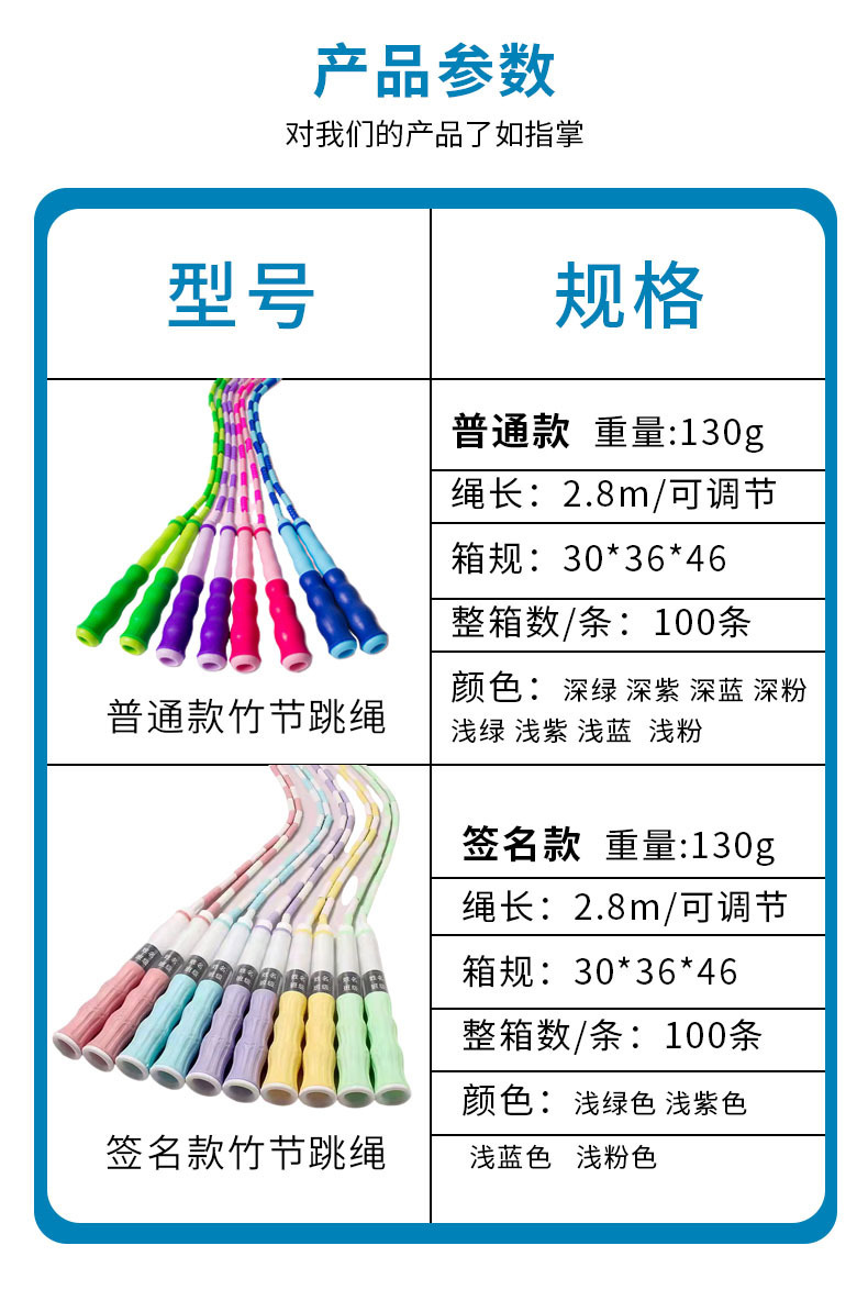 軟珠竹節跳繩兒童跳繩彩色小學生體育用品跳繩可加簽名不打結跳繩