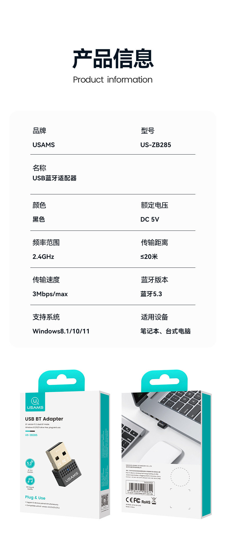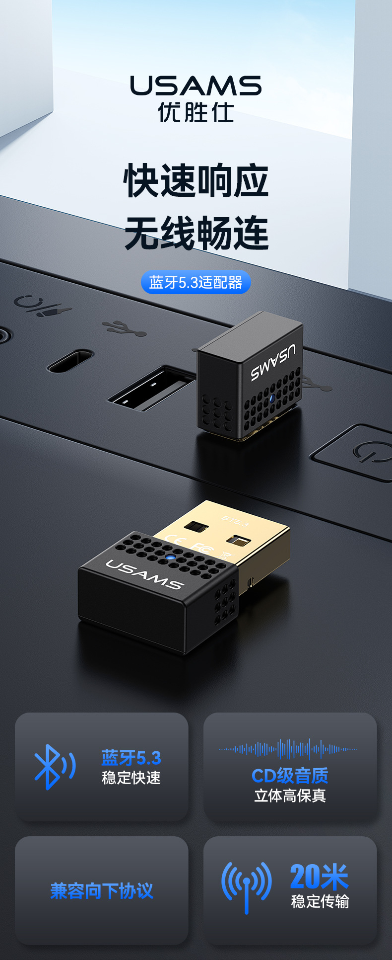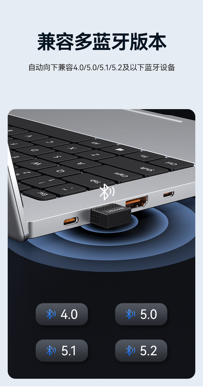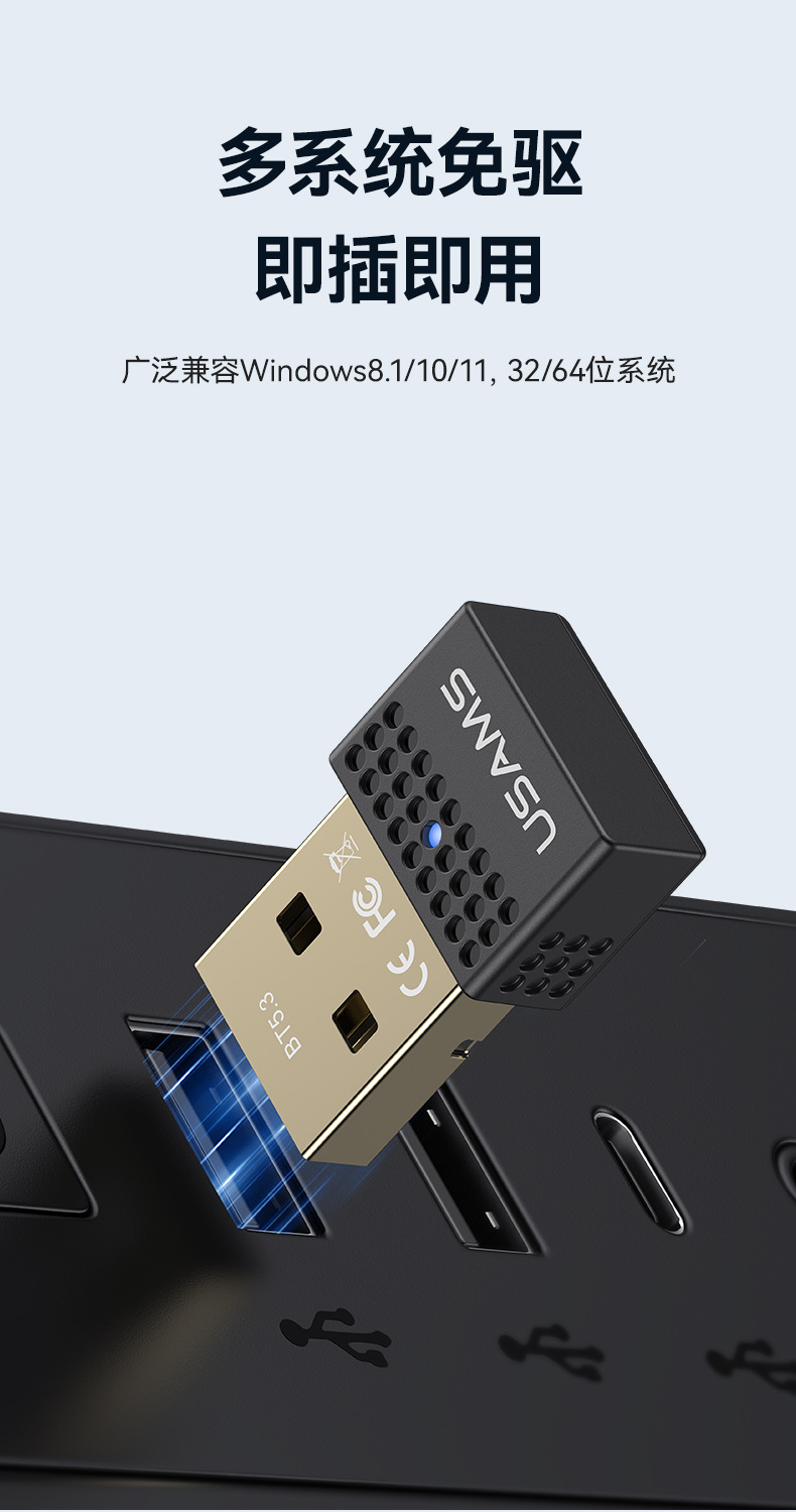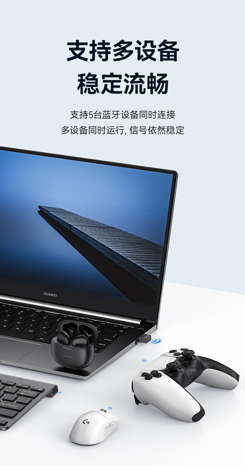 USAMS USB藍牙變壓器5.3 電腦桌上型耳機音箱鼠鍵無線接收發射器5.1