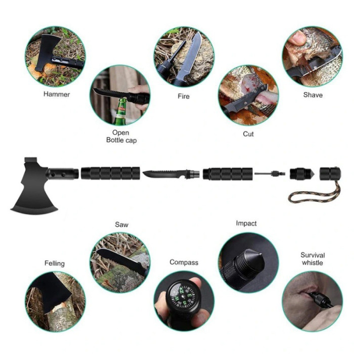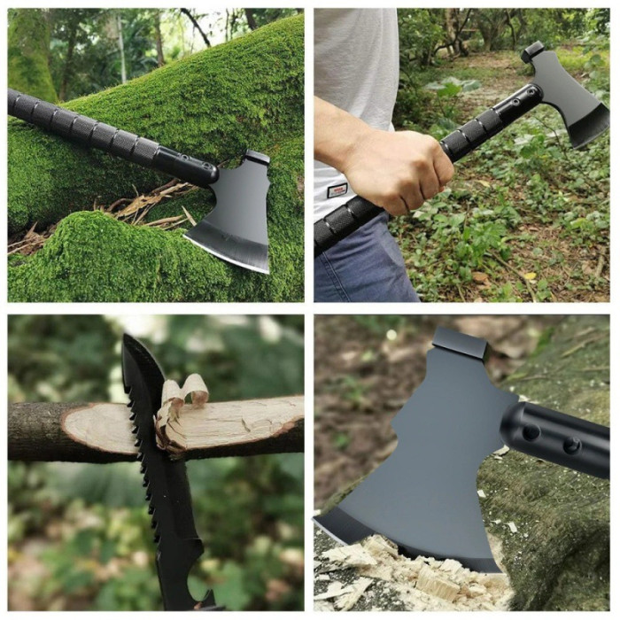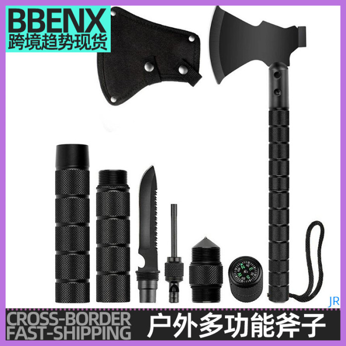 JR戶外多功能斧子野營露營可攜式斧頭伐木砍柴生火指南針開瓶器口哨