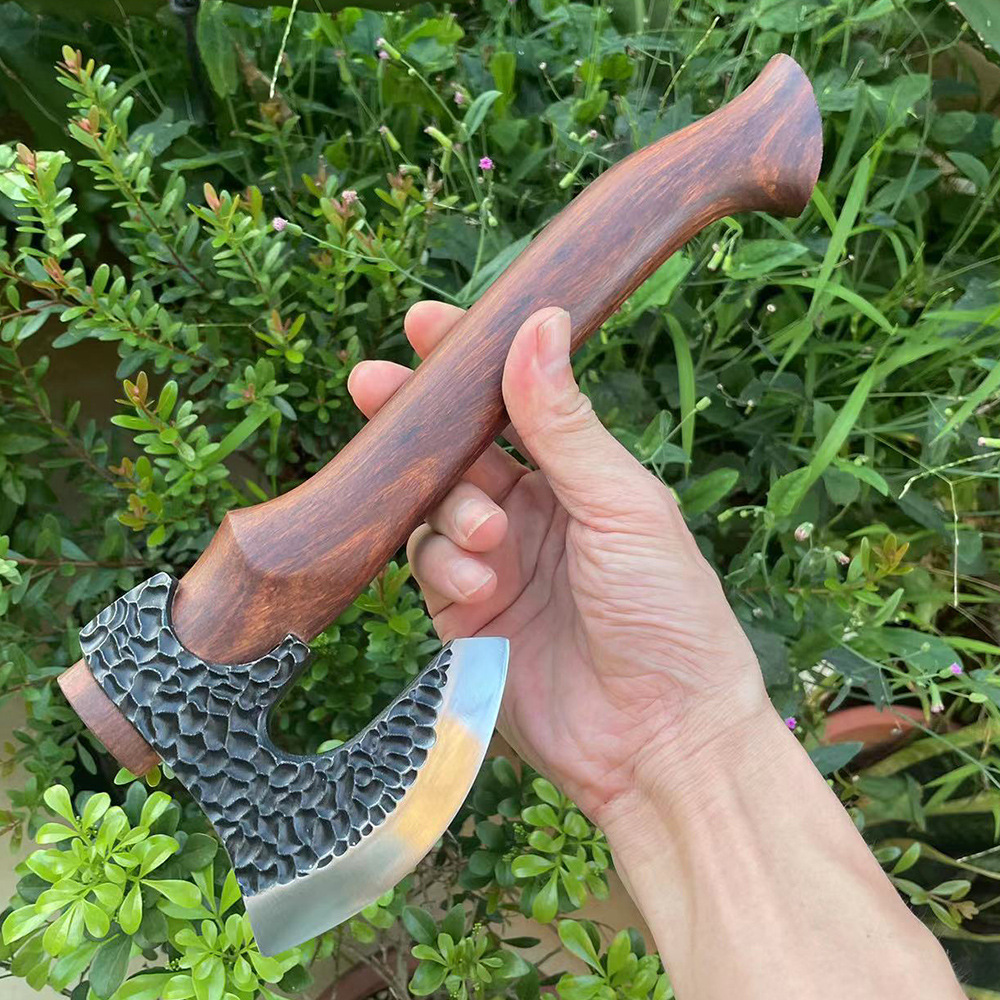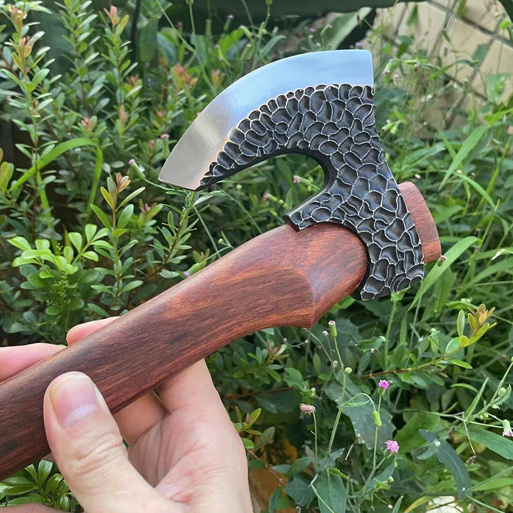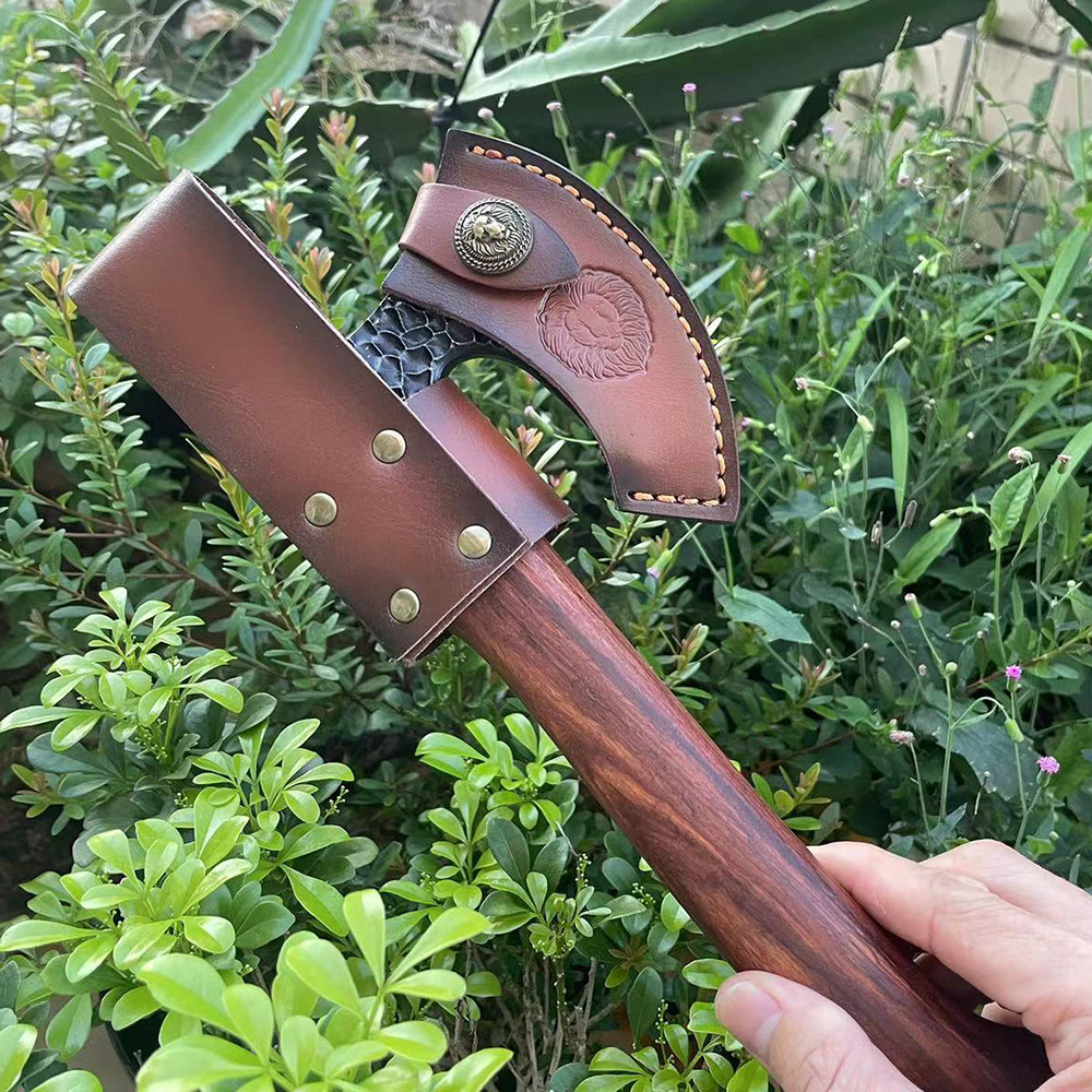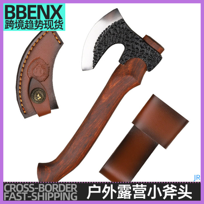 JR戶外露營小斧頭手工鍛打微粒黃檀木柄工兵斧頭野營野炊砍骨砍木