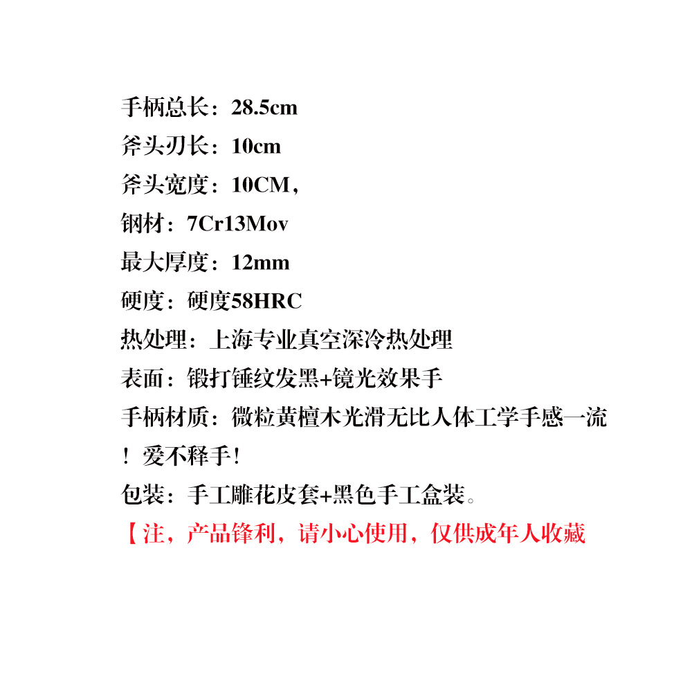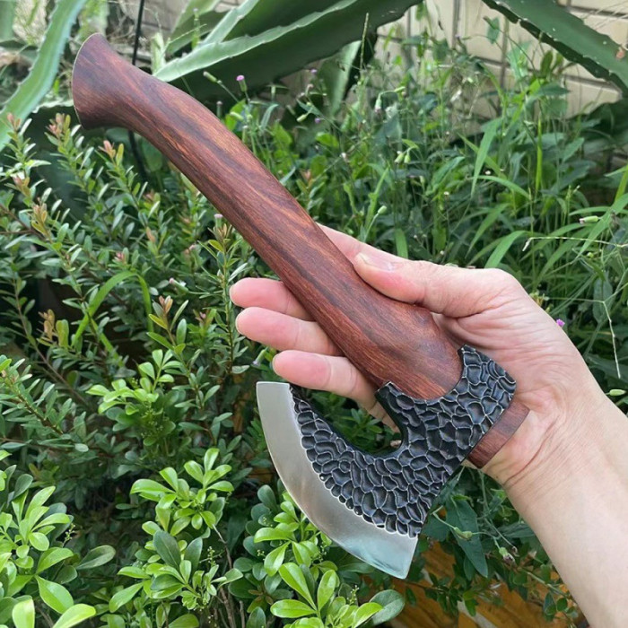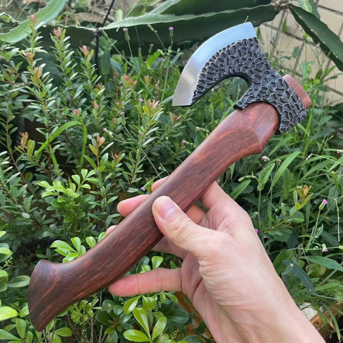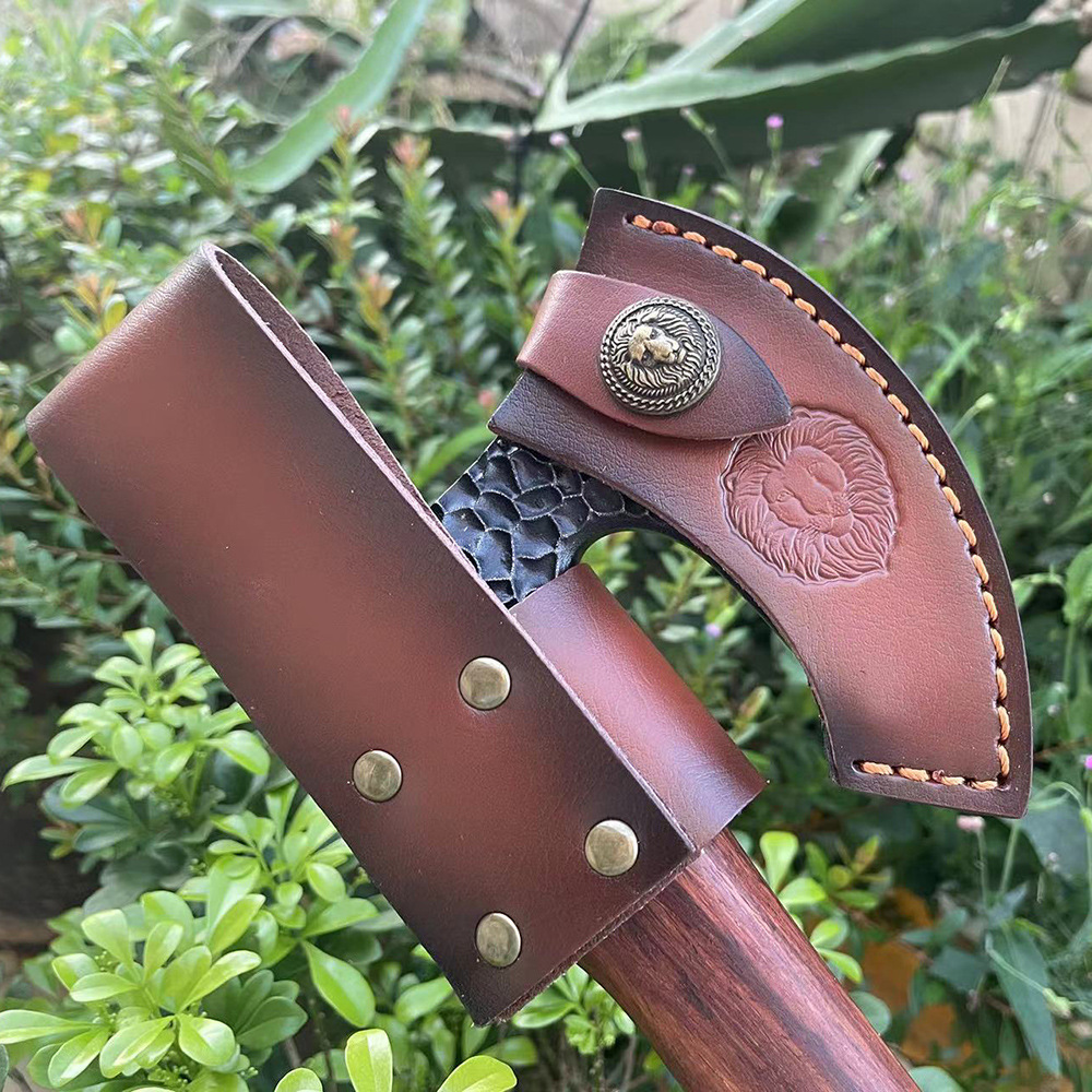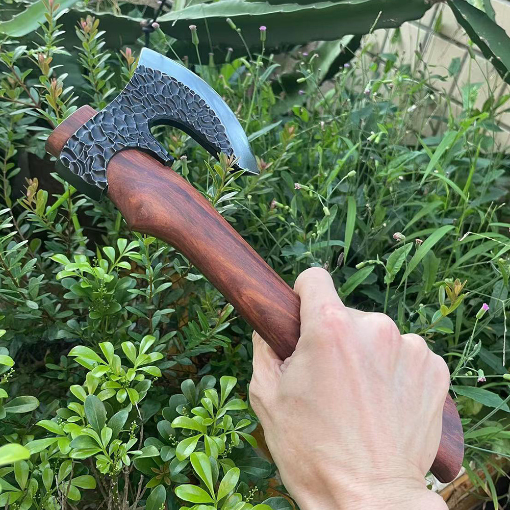 JR戶外露營小斧頭手工鍛打微粒黃檀木柄工兵斧頭野營野炊砍骨砍木
