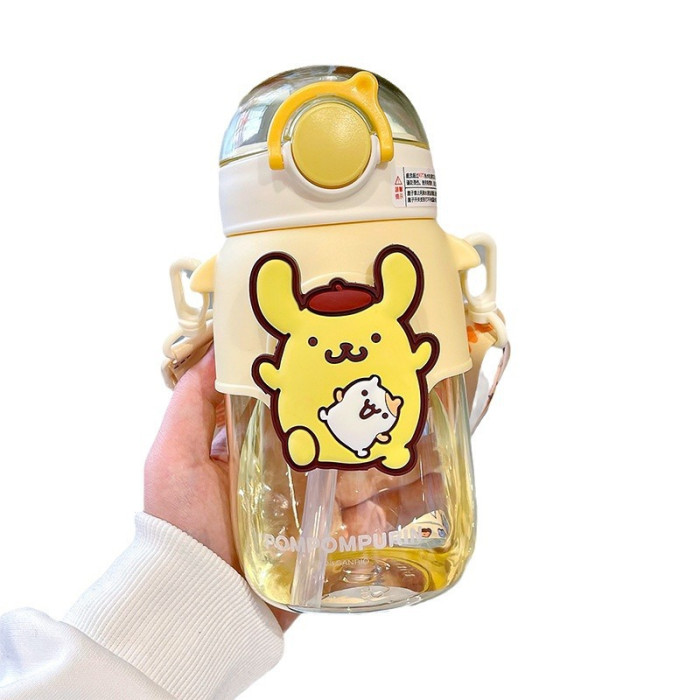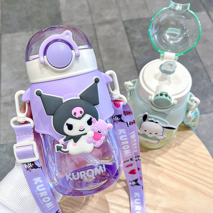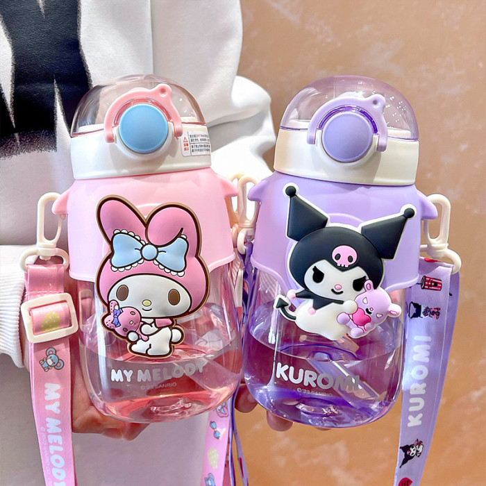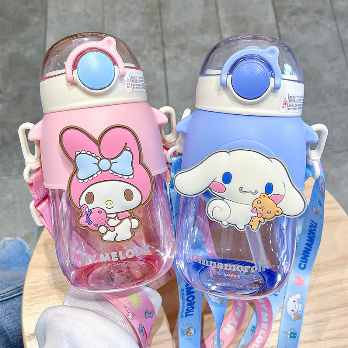 可愛吸管塑膠杯女生高顔值水杯可攜式新款卡通斜背萌兒童塑膠杯子