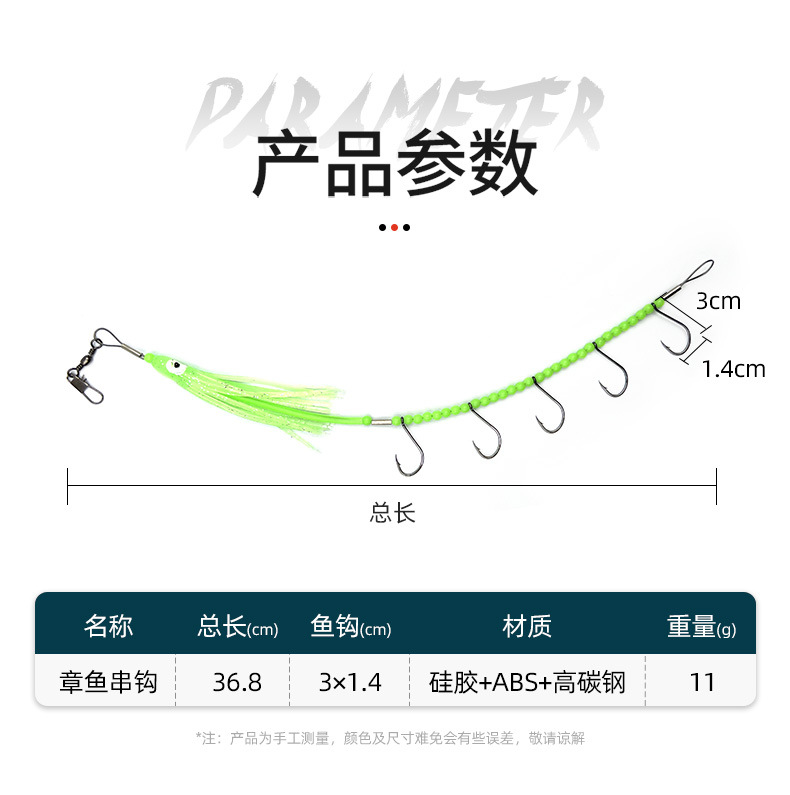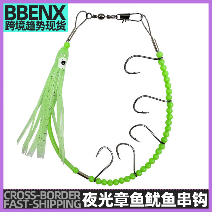 熱帶夜光章魚魷魚串鉤5鉤釣刀魚帶魚帶鋼絲夜光檔串鉤海釣船釣仿| CWOW | |