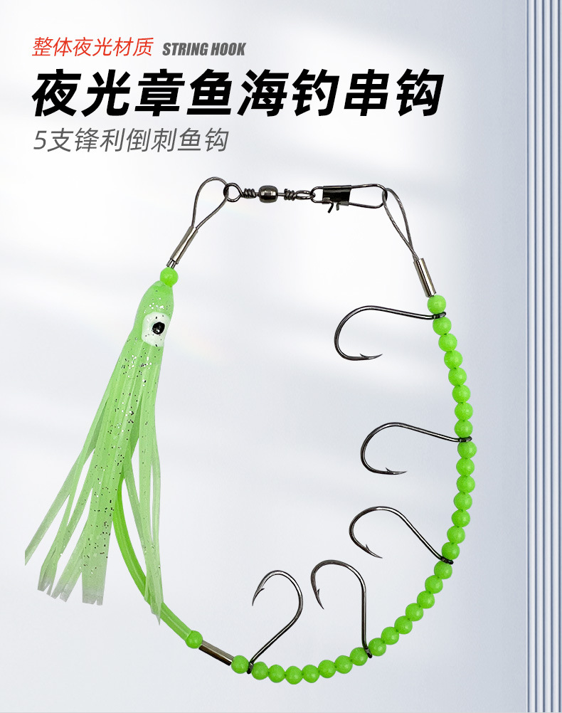 熱帶夜光章魚魷魚串鉤5鉤釣刀魚帶魚帶鋼絲夜光檔串鉤海釣船釣仿