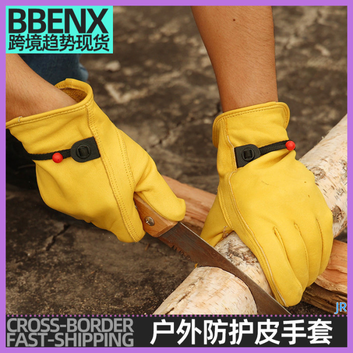 JR戶外防護皮手套露營篝火燒烤野炊防燙隔熱皮手套柔軟耐磨防滑