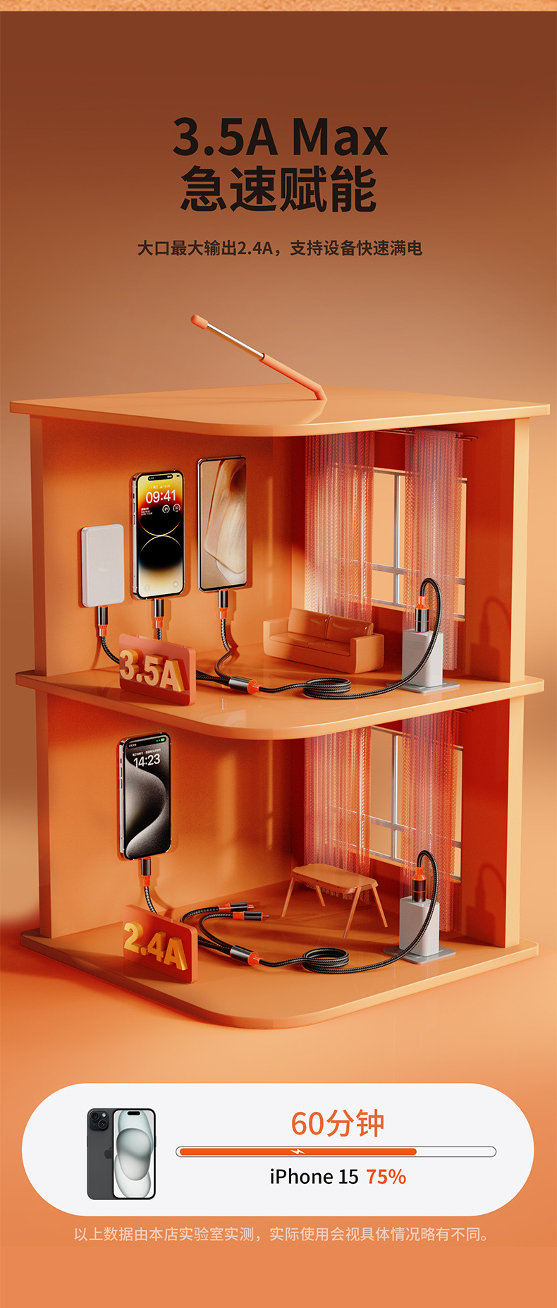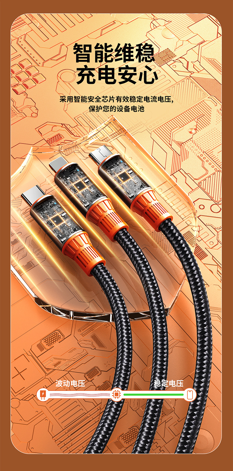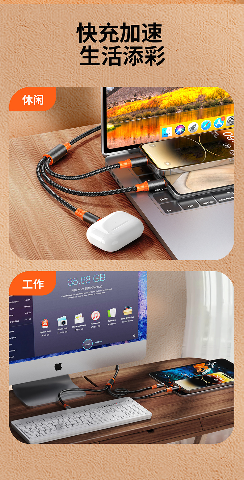 | 型號 | 黑金橙【USB+Type-C口二拖三】100W超級快充 |