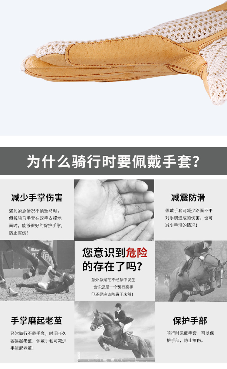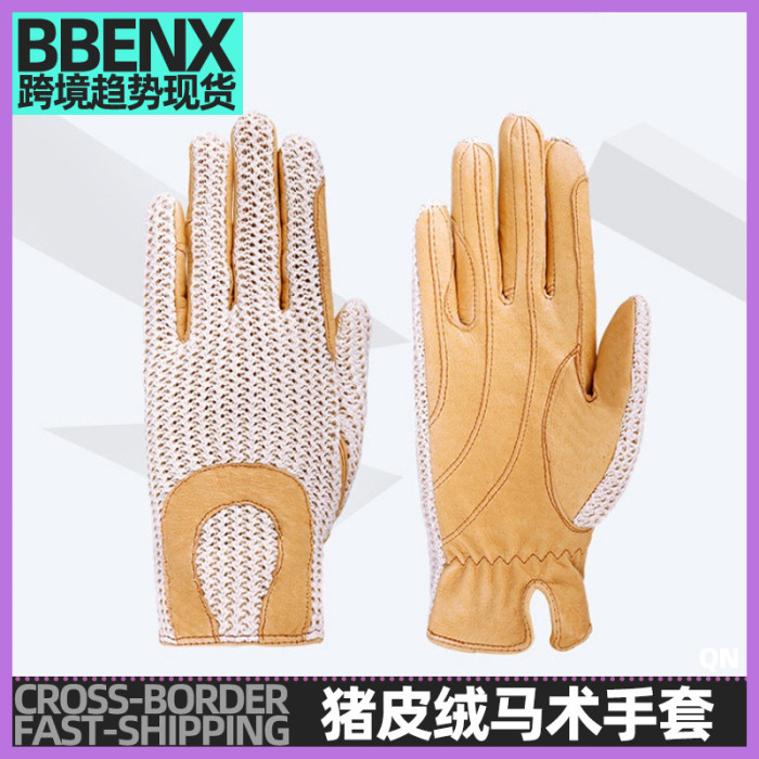 豬皮馬術手套絨背騎馬手套戶外騎行護具防寒保暖戶外馬術騎行手套