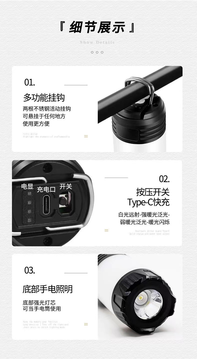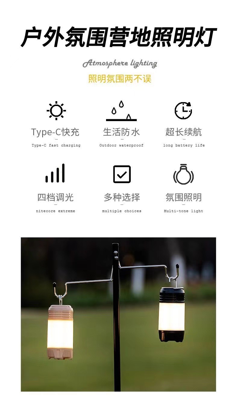 戶外野炊帳篷露營燈防水氛圍營地充電多功能超長續航露營掛燈