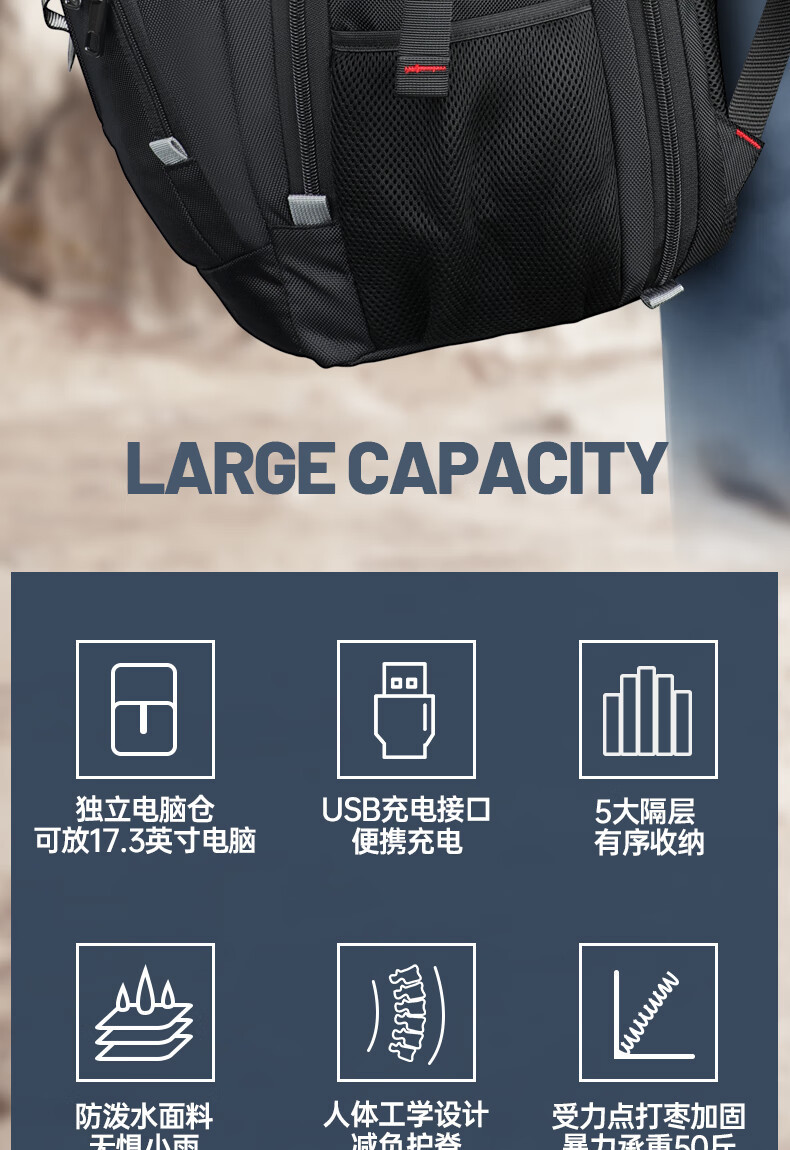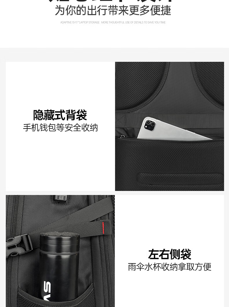 swicky雙肩包男多功能電腦包超大容量後後背包反光條牛津布旅行包