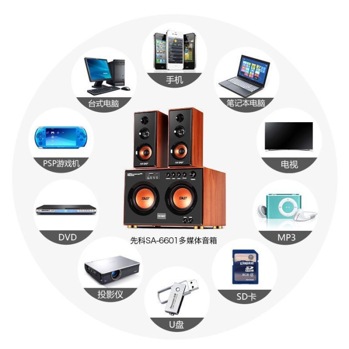 先科-6601電腦音箱家庭影院K歌桌上型KTV超重低音砲音響KTV杜比環繞
