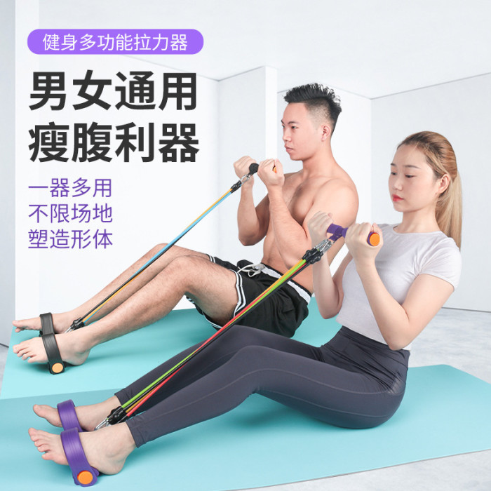 男女健身五管腳蹬拉力器 仰臥起坐輔助器阻力繩 多功能健腹拉力繩