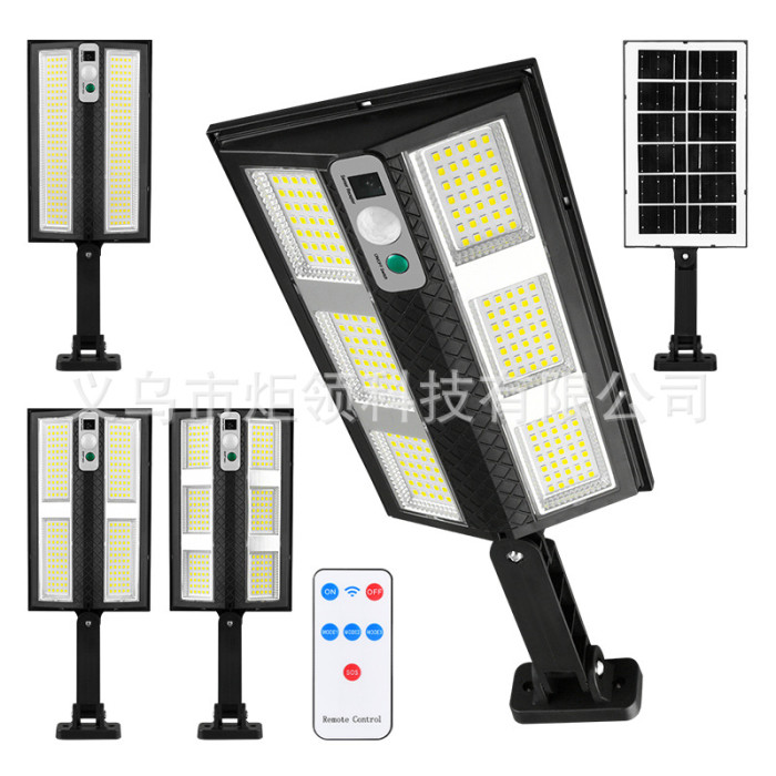 新款太陽能一體雙排路燈戶外庭院燈戶外防水小路燈人體感應牆壁燈