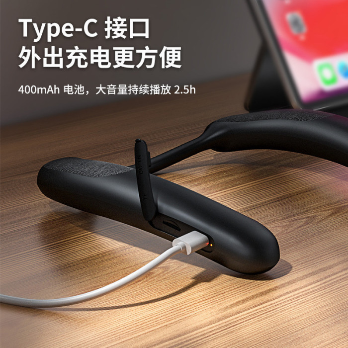 2025新款掛脖式無線藍牙音箱布藝可攜式穿戴頸部低音砲立體聲