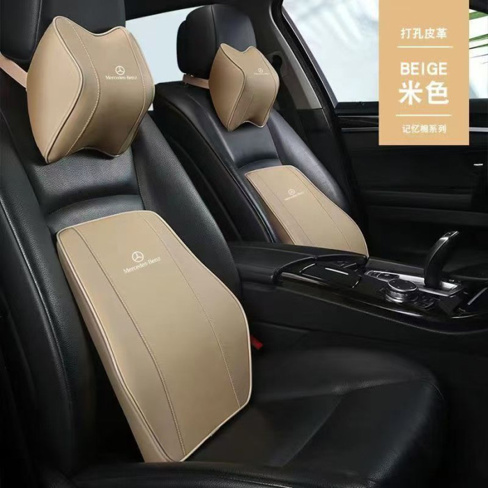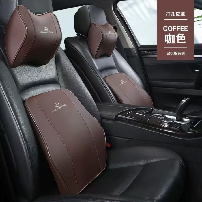 汽車頭枕腰靠墊護頸枕記憶棉打孔皮革奔馳GLB/GLC/E級C級套裝靠枕